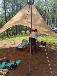 刚开始搭,还有点手忙脚乱,但是看了图示,很快就搭好了,质量也挺好。边角连接处都有加固,防晒效果也不错,美中不足是没有带起钉子的榔头,不方便,现在好多天幕带榔头,方便安装,联系厂家后期也可以配上