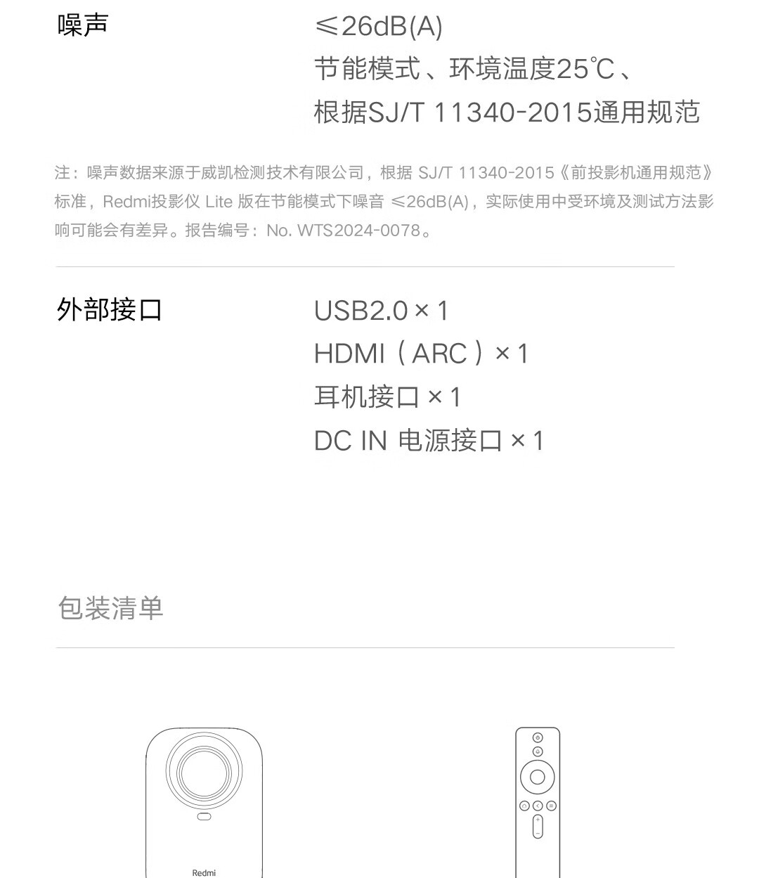 小米Redmi投影仪Lite版 家用1080P小型可携式超高清办公家庭投影仪 Re Redmi投影可携式支架