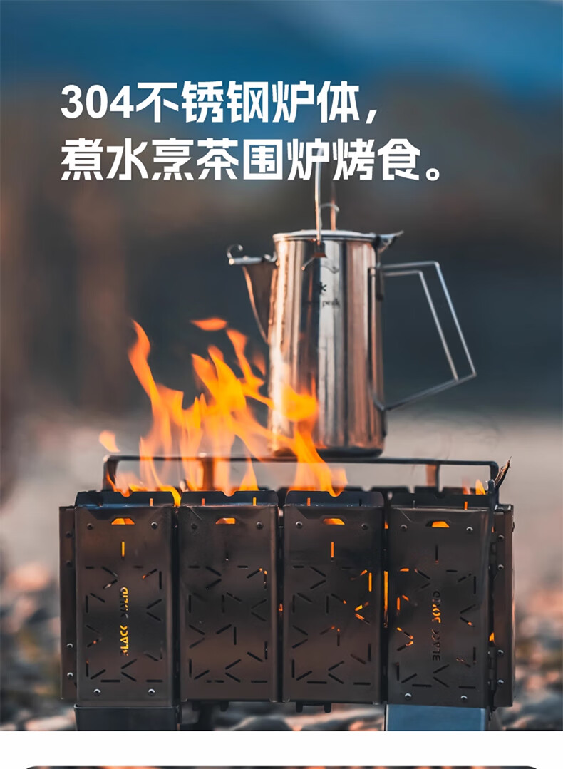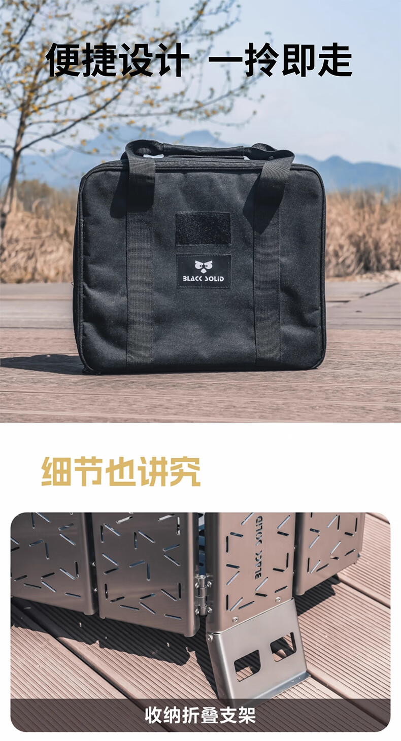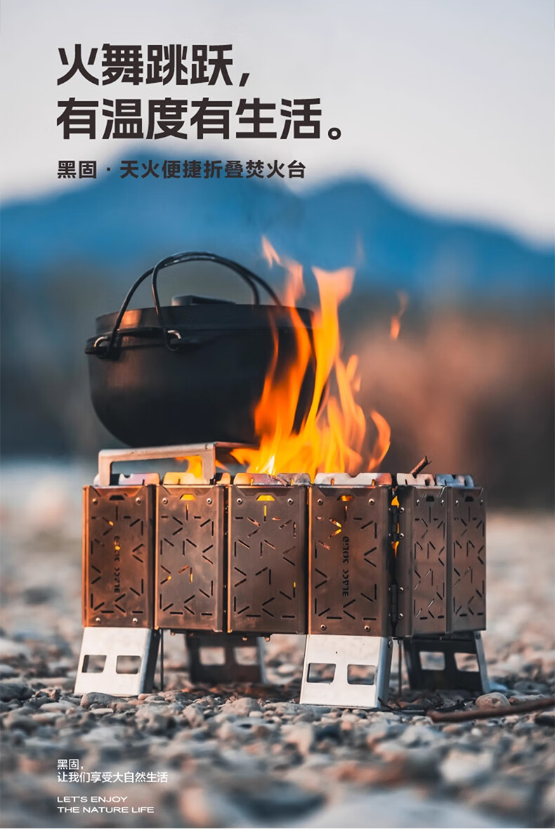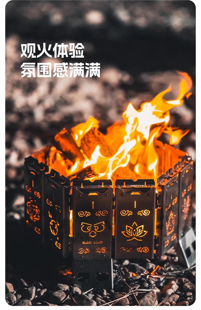 黑固 BLACK SOLID25年新款焚火台透雕柴火炉户外便携可折叠不锈钢篝火台 雅致长隆