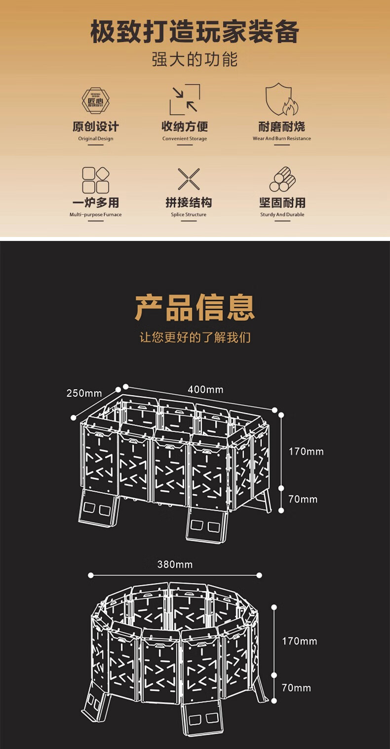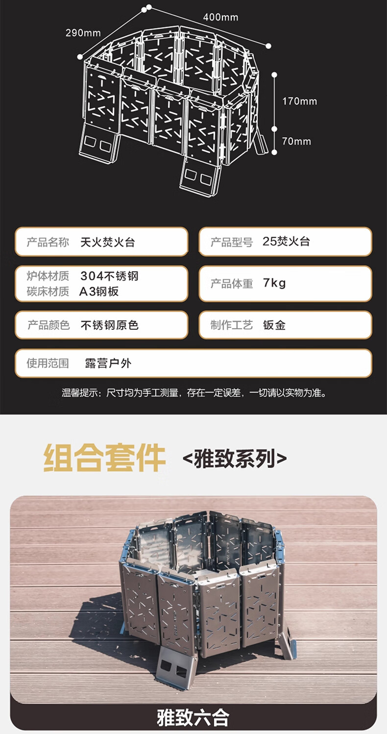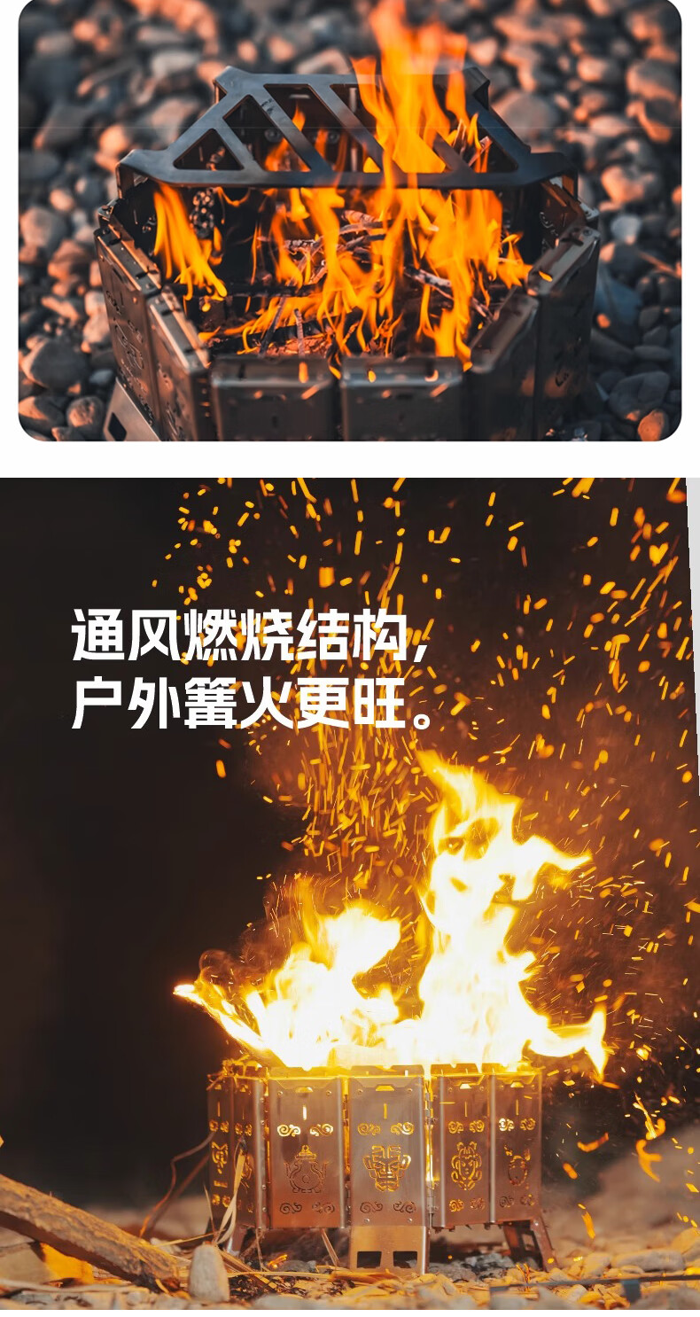 黑固 BLACK SOLID25年新款焚火台透雕柴火炉户外便携可折叠不锈钢篝火台 雅致长隆