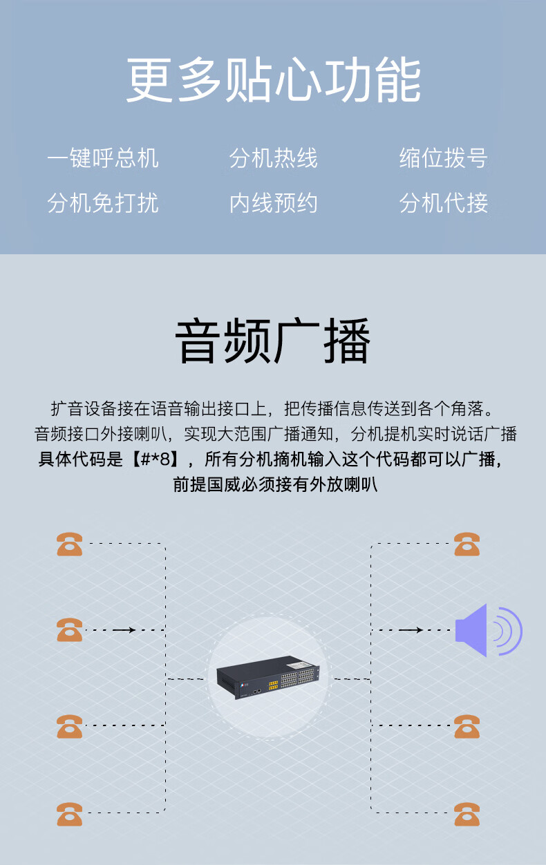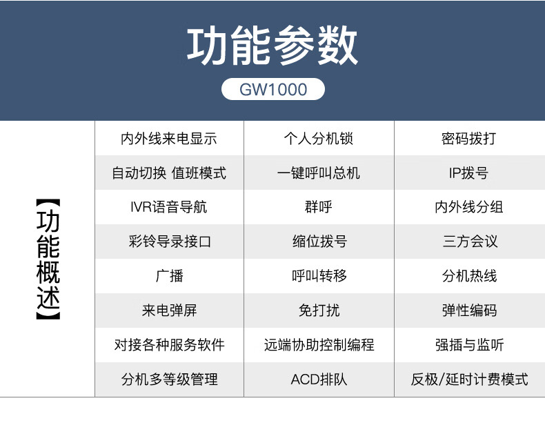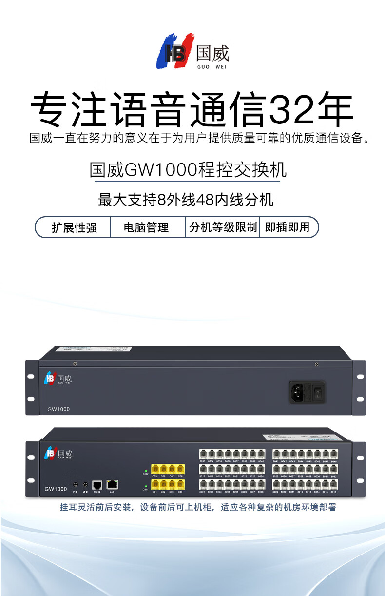 国威这款GW1000具备高集成,易安装,免维护, 可接专用话机,话务排队,抗干扰保护等功能, 对于大型的集团和写字楼而言,其实非常适合中小办公环境成本进一步得到降低,同时非常有效果解决办公效率问题。