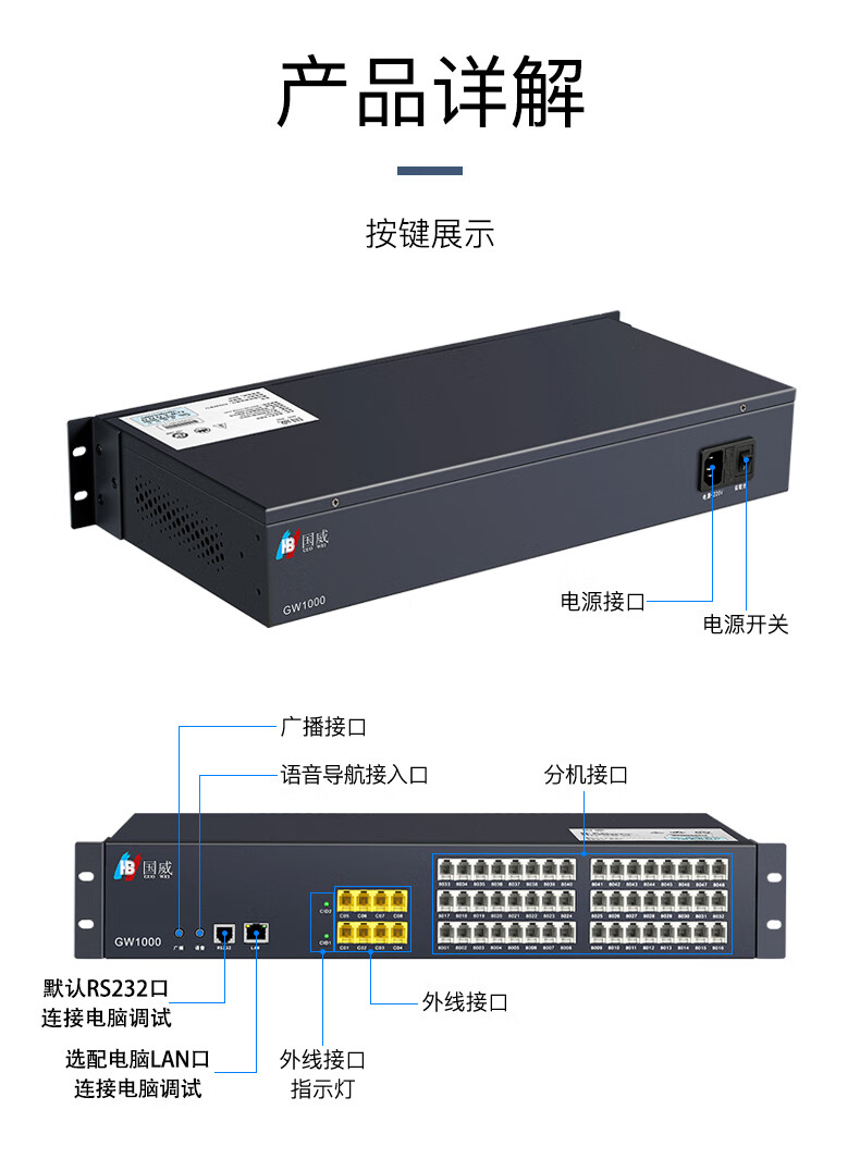 国威产品应该不错,老板指定要的,能上机柜,接口标注的很清楚 外形外观:包装还好磕不到机器 通话效果:通电测试挺清晰