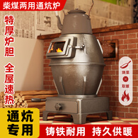 欧乐奇柴火取暖炉冬天家用室内采暖炉农村无烟柴煤两用炭火炉网红烤火炉 【铸铁可通炕】大号特厚款+配件
