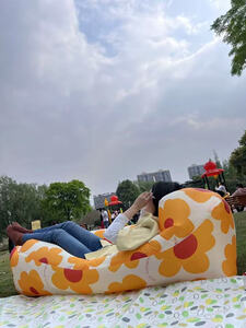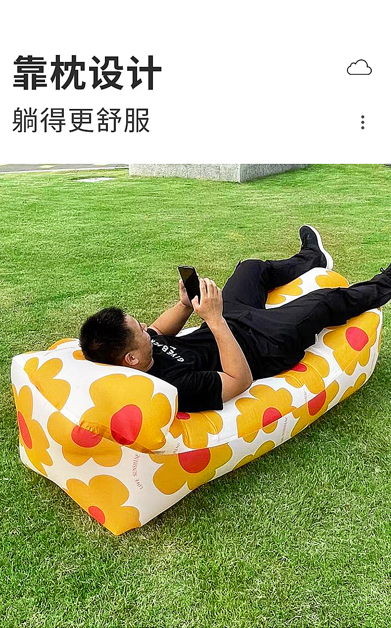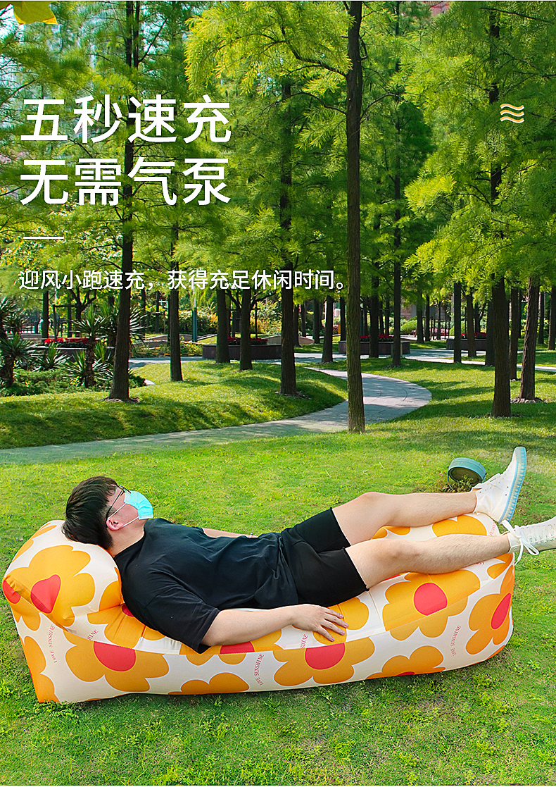 尤池哩户外充气沙发带头枕懒人空气床单人充气垫子便携折叠趟椅音乐节 3秒充气-太阳花头枕款 180*70*50cm(冲完气)