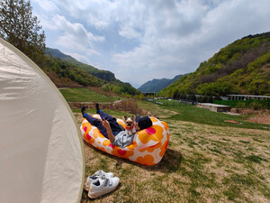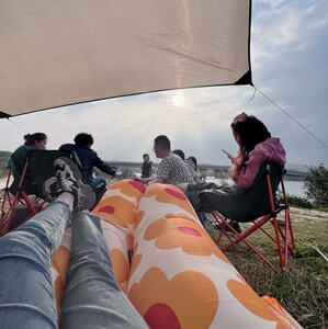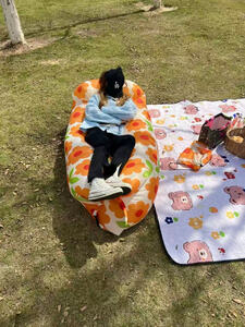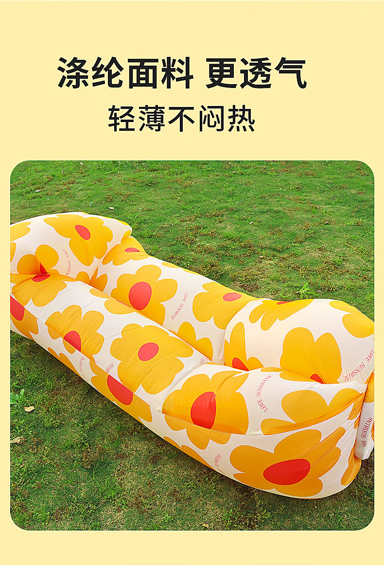 拜杰(BJ) 充气沙发太阳花色户外气垫床便携懒人野营折叠躺椅网红充气垫 太阳花带遮阳充气沙发