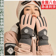 尤池哩男女冬滑雪手套棉成人防水加厚保暖手套户外玩雪五指手套登山骑行 粉灰【女款均码】