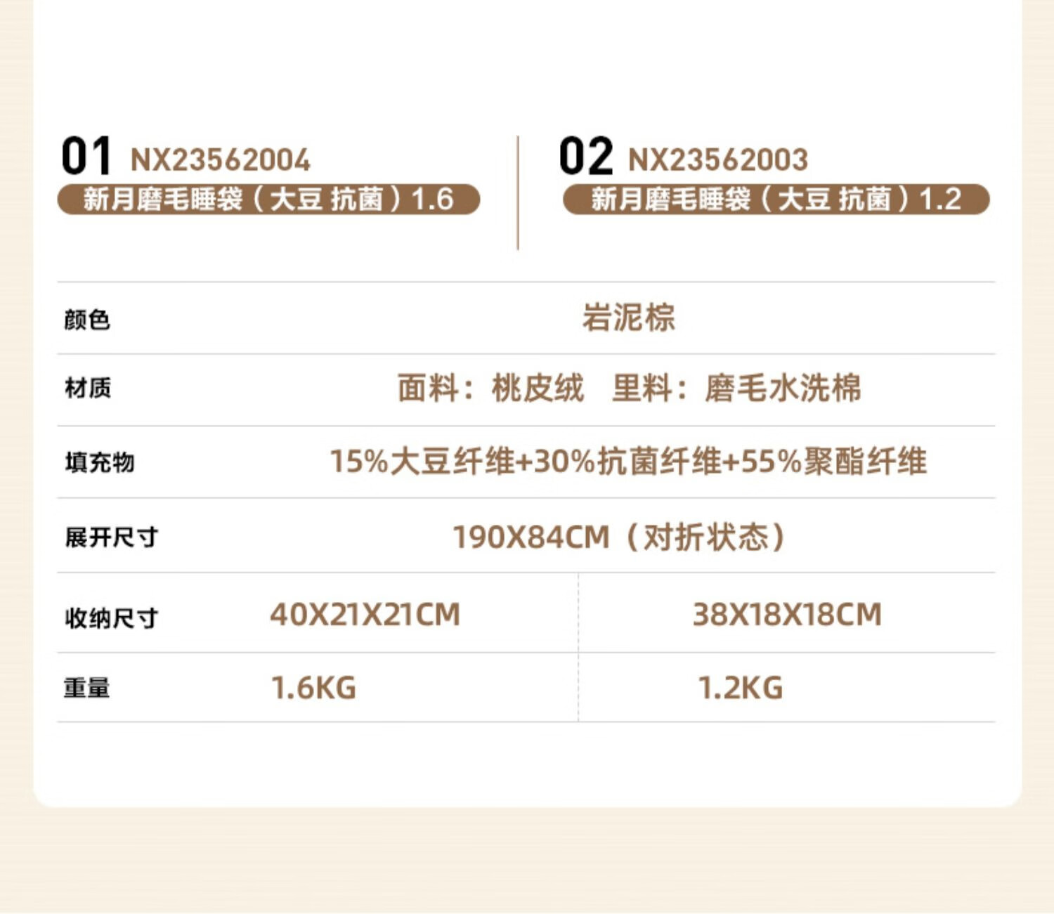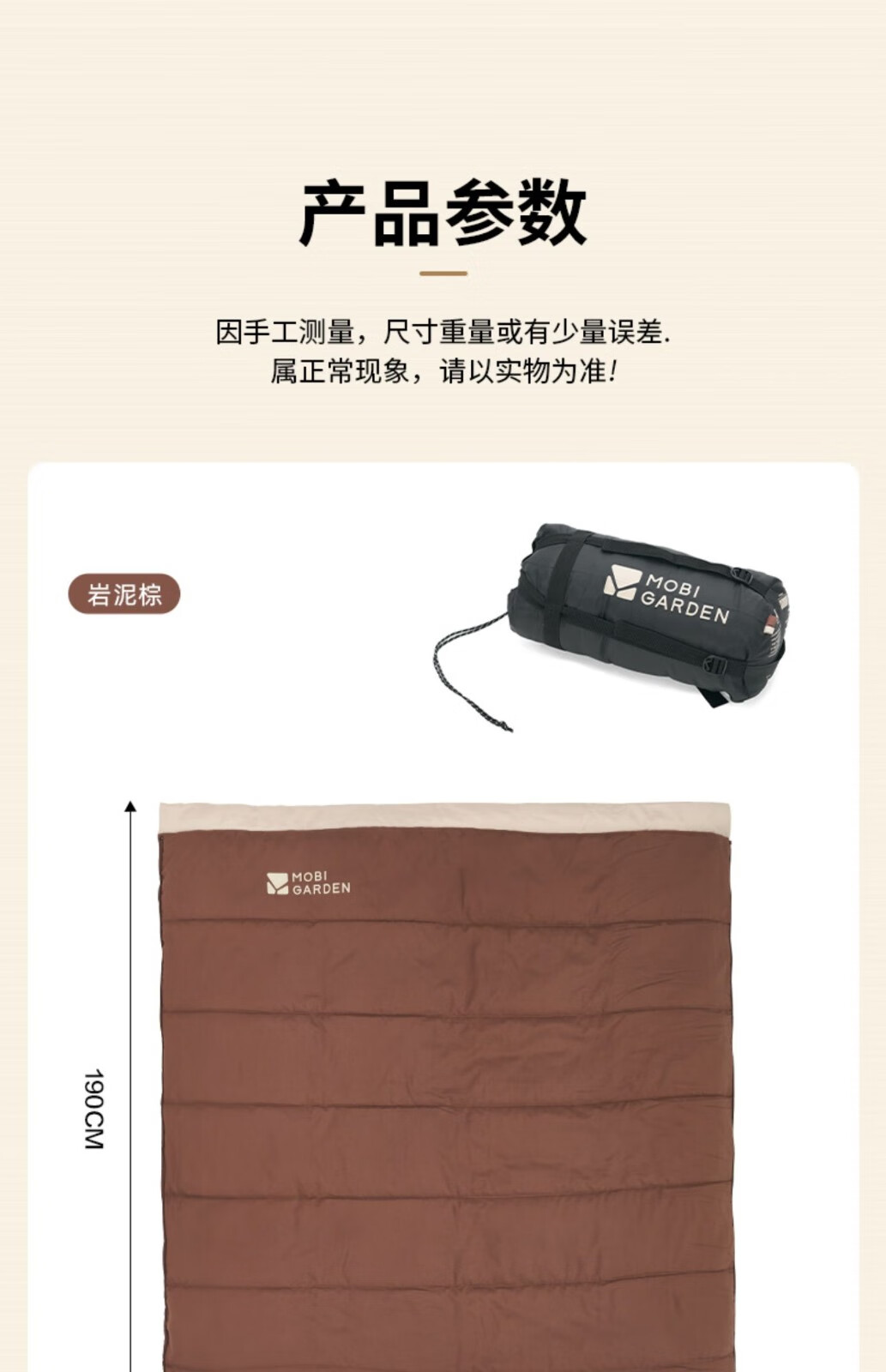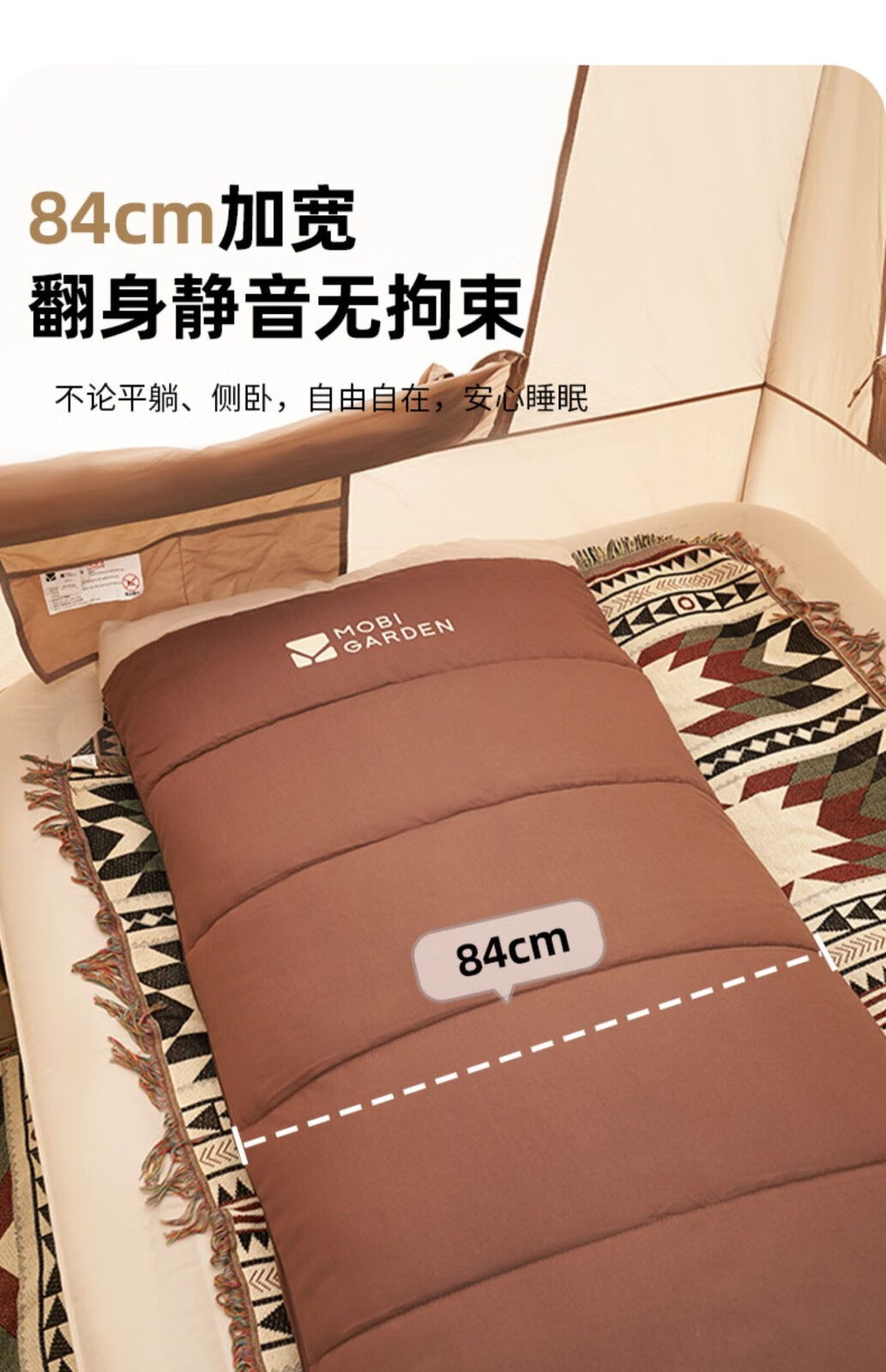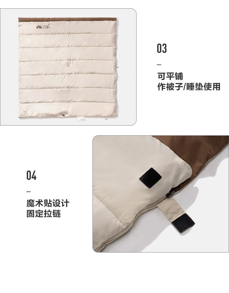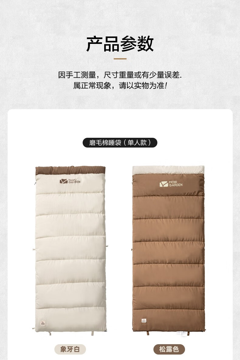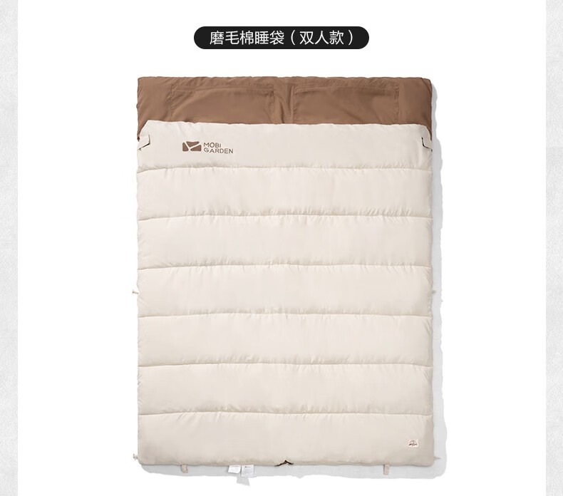 牧高笛(MOBIGARDEN) 新月睡袋登山露营保暖加宽单人磨毛棉信封式成人户外棉睡袋 象牙白1.8kg