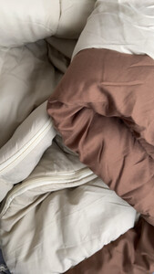 睡袋跟被子一样厚实 拉链式设计很方便 是温柔的色系 睡袋的面料很舒服 特别柔软舒适 这个冬天就可以暖暖的了 挺满意的!n