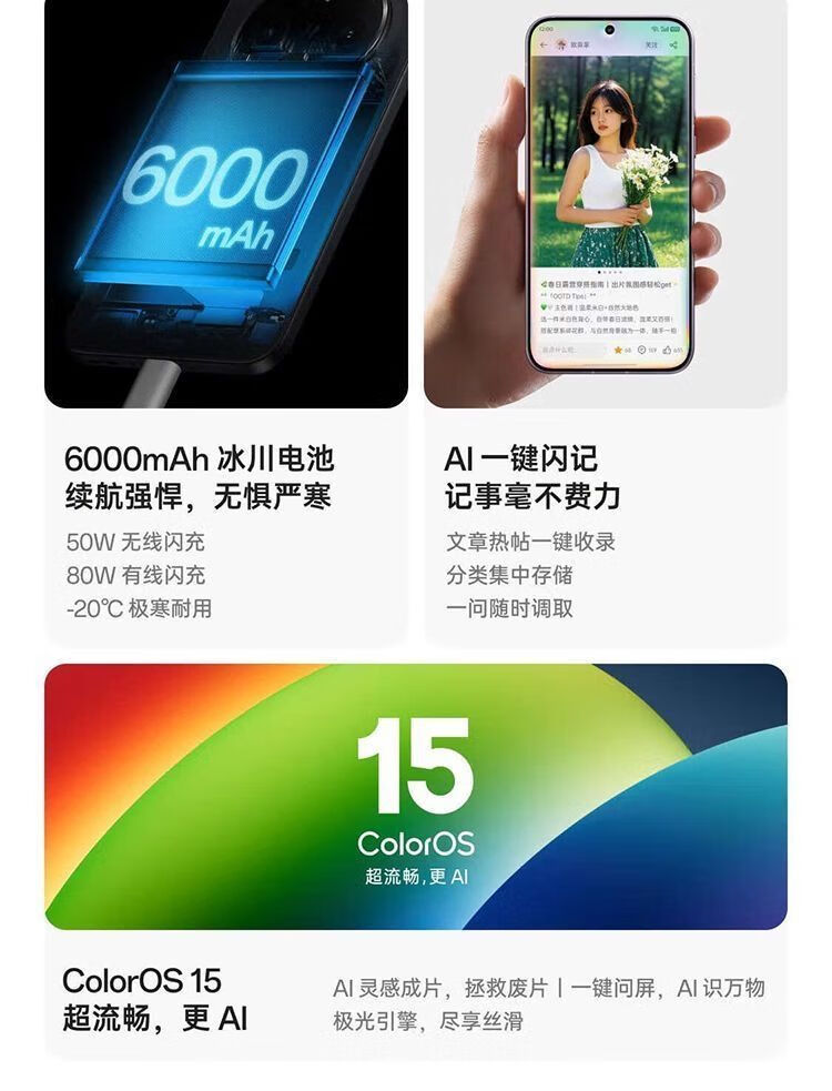OPPO Reno15 16GB+512GB 星光蝴蝶结 12期分期可选 5G手机新品 K13x 超流畅ColorOS 15 IP69 防尘防水 【曜黑】8GB+256GB 12期分期选项