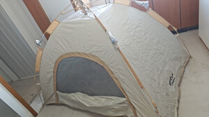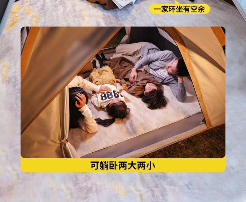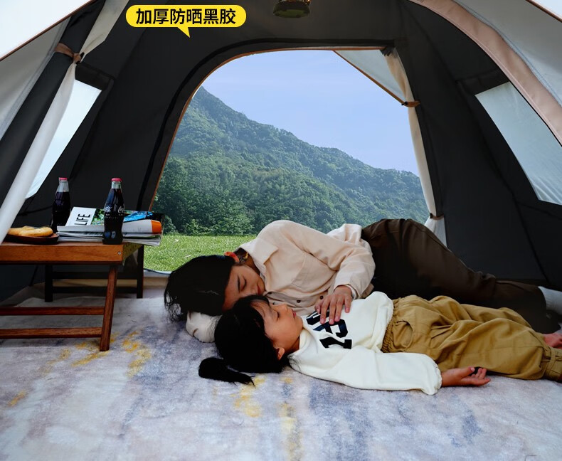 帐篷今天第一次拿出来用,撑开方便,双开门很透气,也比较隔热,搭配天幕使用会更好。容纳一家三口没有问题,牌子货就是不一样。