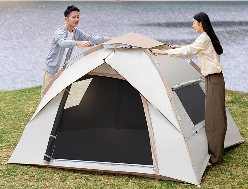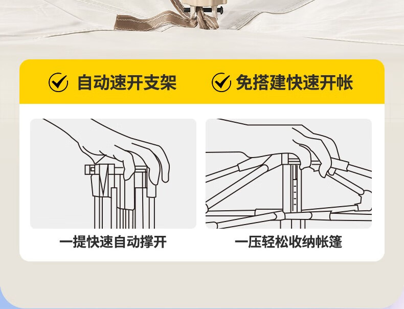 方便快捷,帐篷颜值也可以,蛮好看的,到时候去试试效果,里面空间还可以,刚刚好够用。后续使用质量效果追评评论