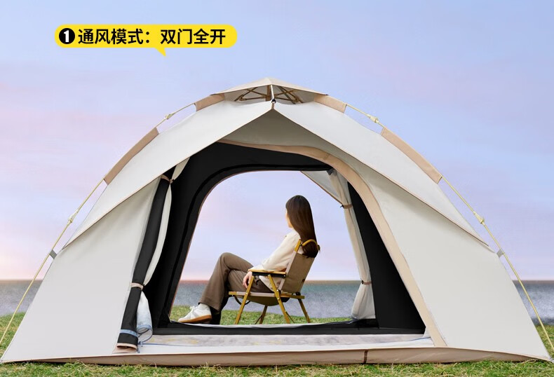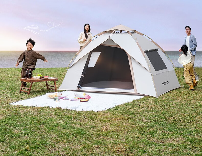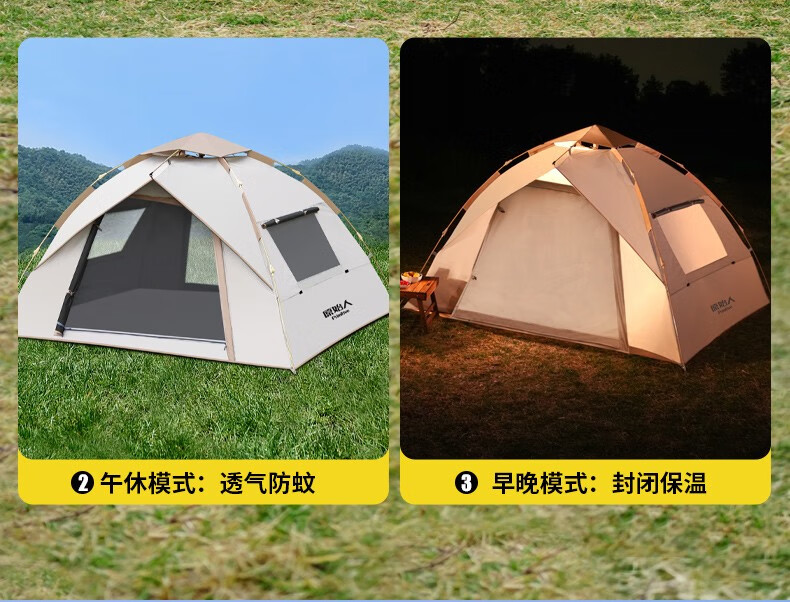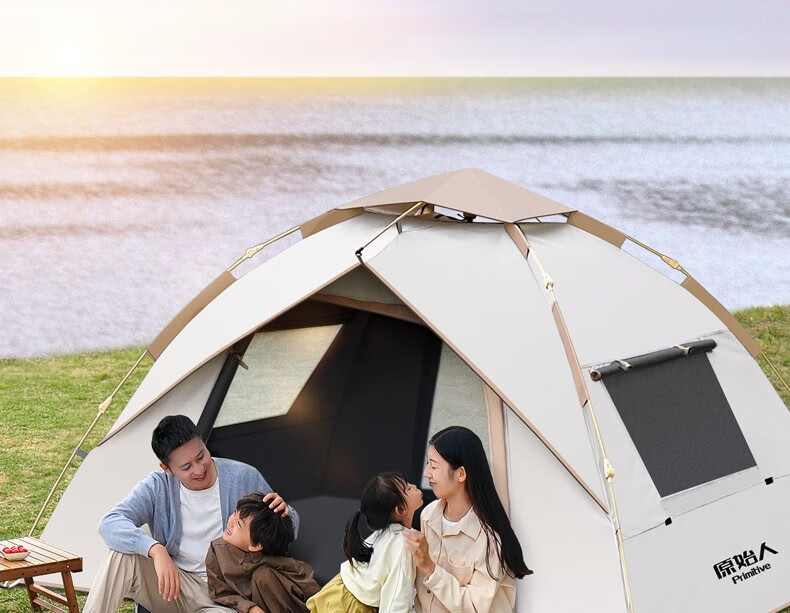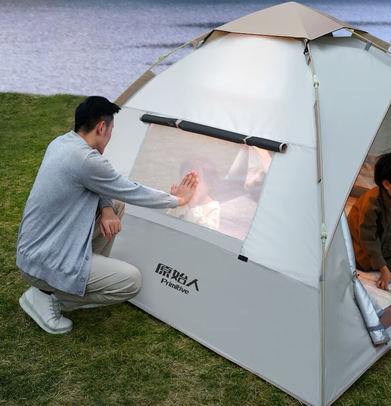 原始人 帐篷户外露营用品装备全自动速开便携折叠野营野外防雨室内 3-4人【两门两窗】桌椅套餐