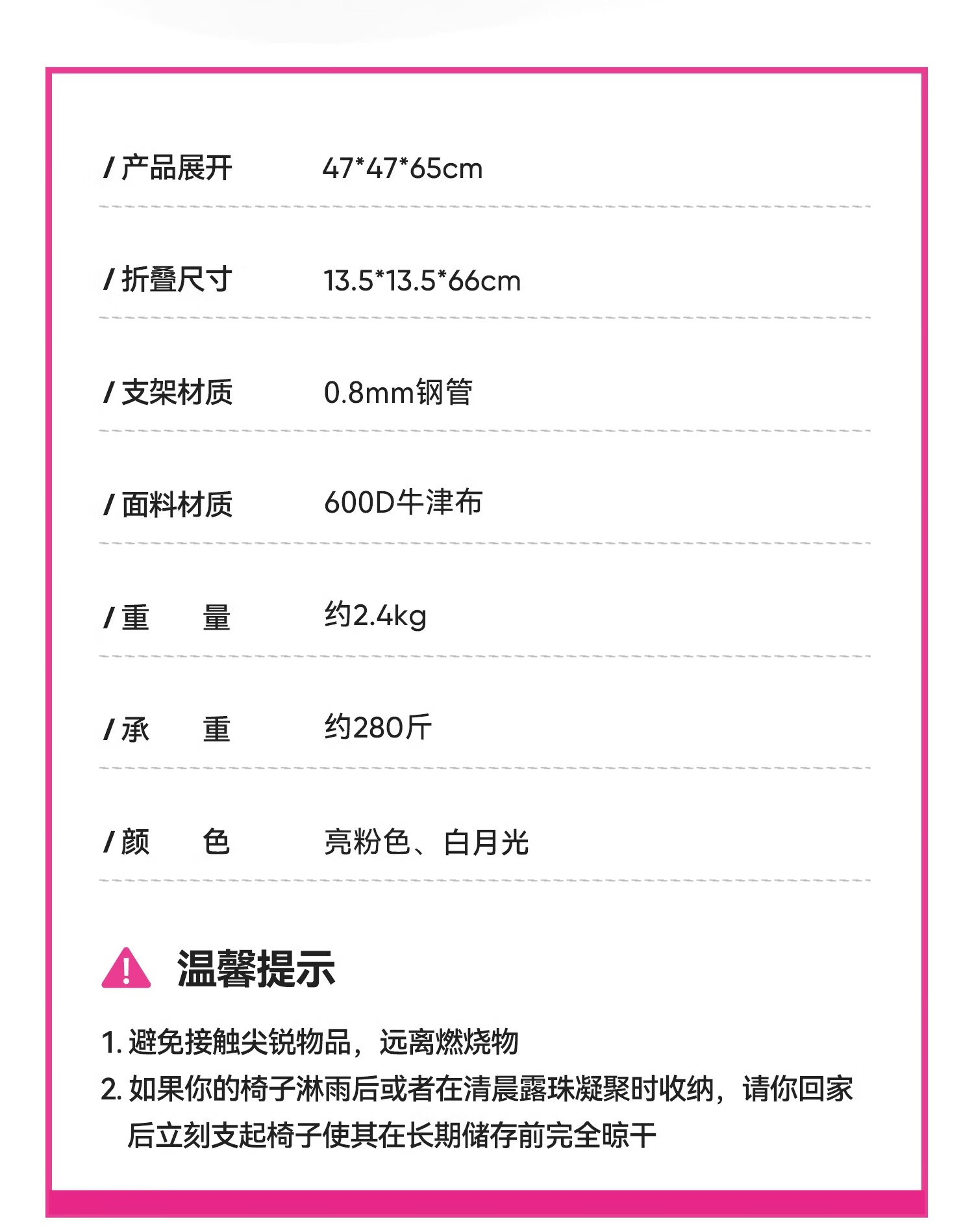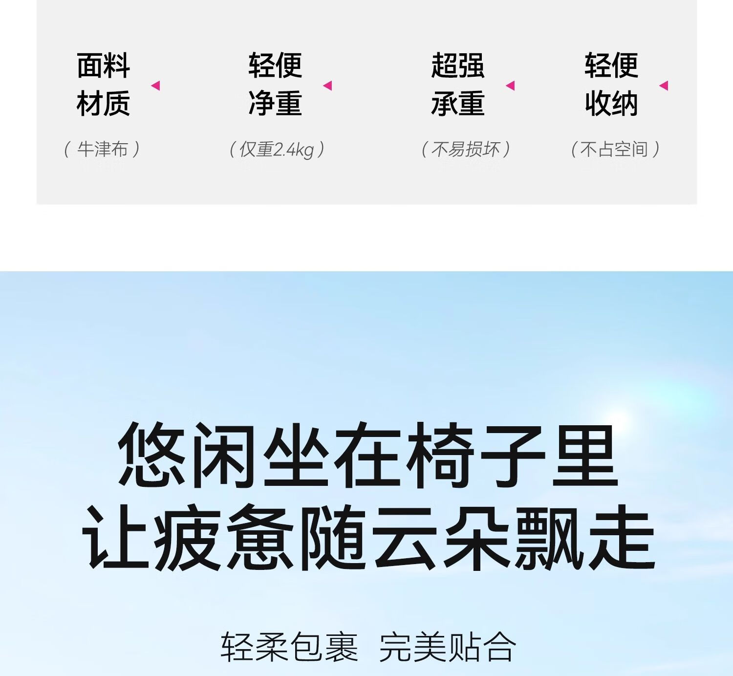 这个椅子是坐着最舒服的户外露营椅,颜色很芭比很漂亮,会让人看着心情很好。坐着也比较舒服。高度也比较合适,腰部也有支撑,喜欢