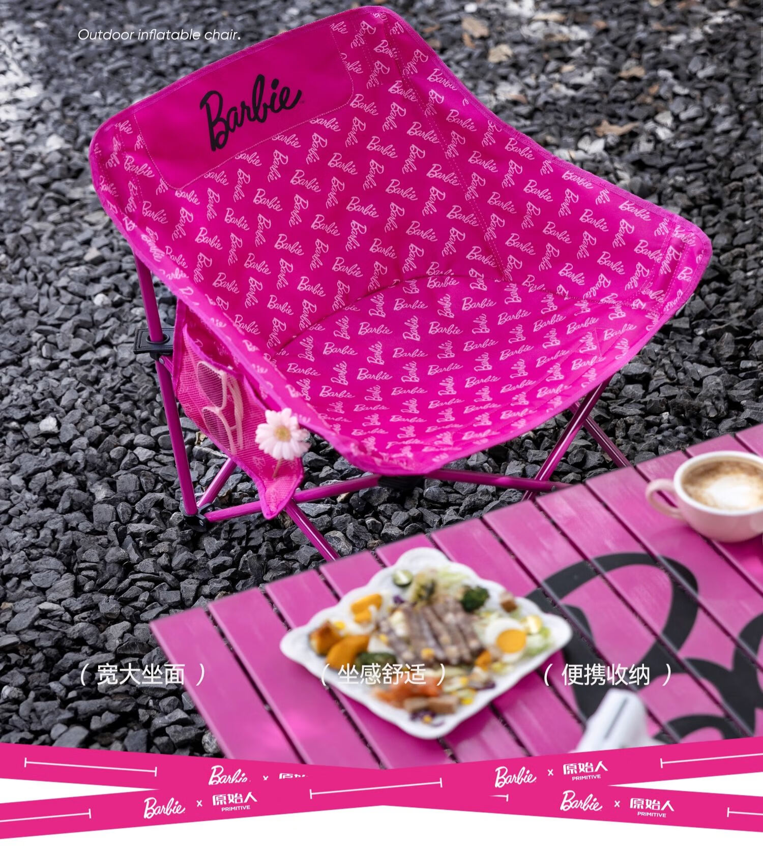 原始人芭比月亮椅户外折叠椅露营椅子桌椅沙滩椅便携躺椅野餐椅凳 软包专定款芭比亮粉【加大底座】