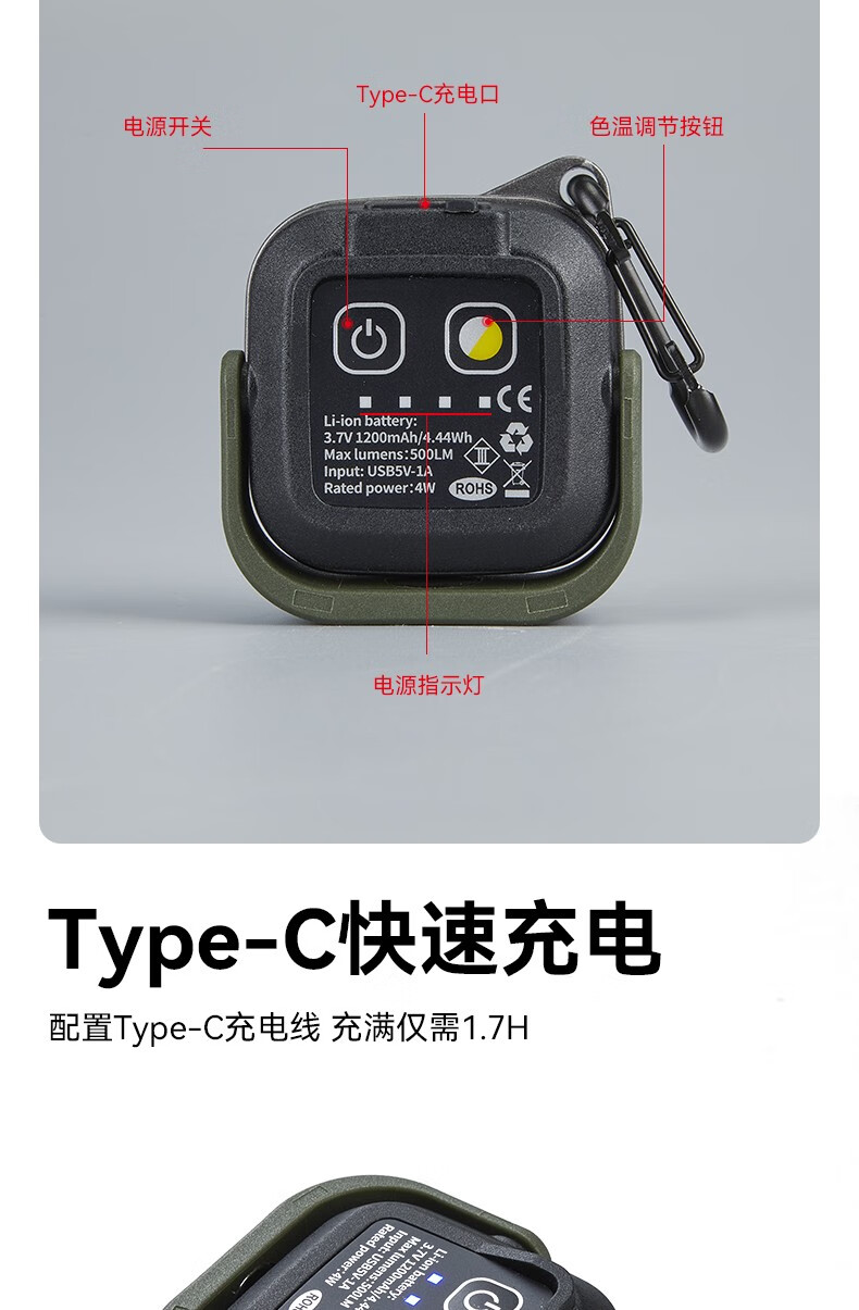 NatureHike挪客多功能背包灯随身灯钥匙扣迷你露营高亮小便携汽修灯投光灯 橄榄绿