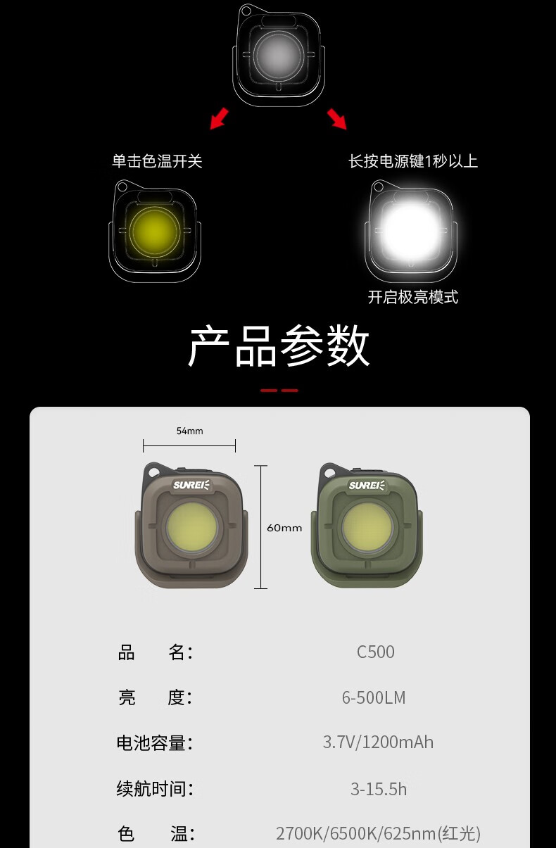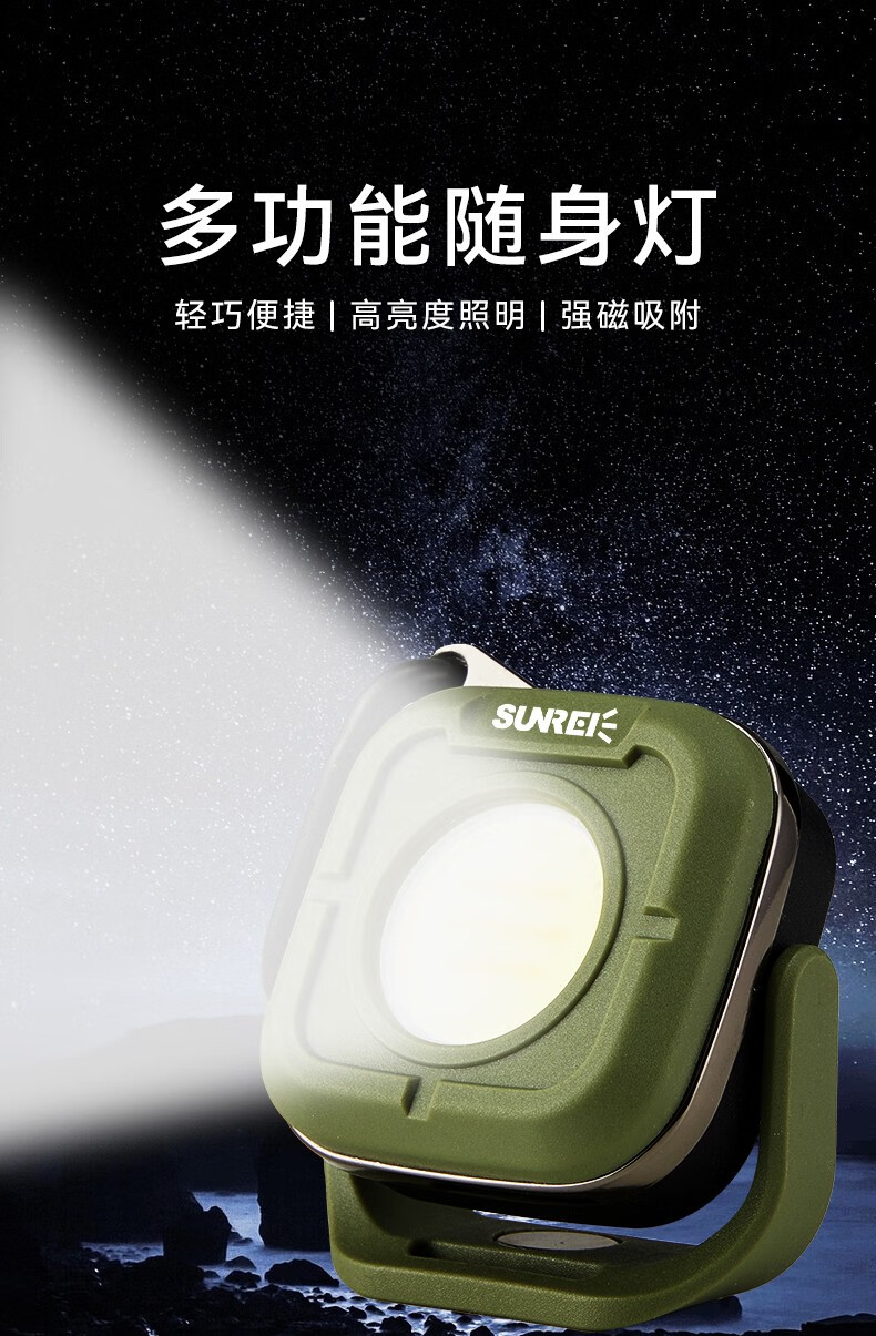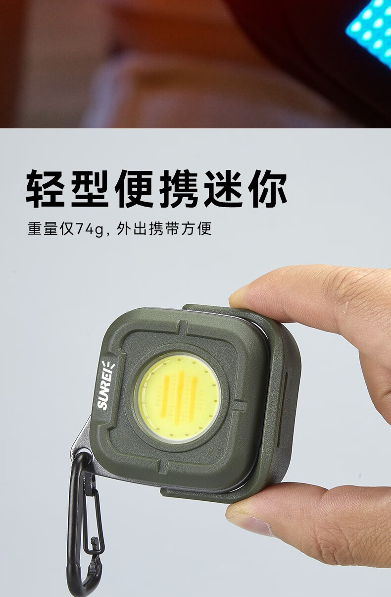 山力士C500多功能随身灯钥匙扣迷你露营高亮小便携汽修灯投光灯 军绿色(带灯罩)