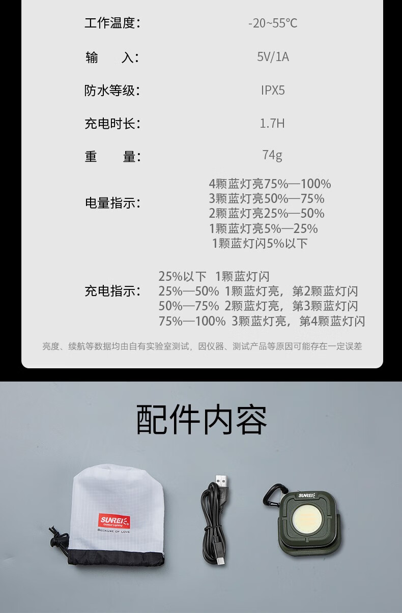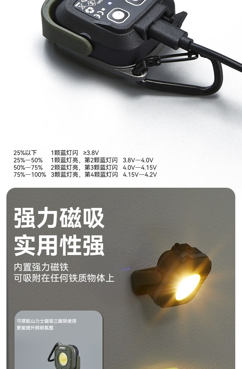 山力士便携磁吸灯500流明户外运动威沃德便携磁吸灯500流明户外运 白色