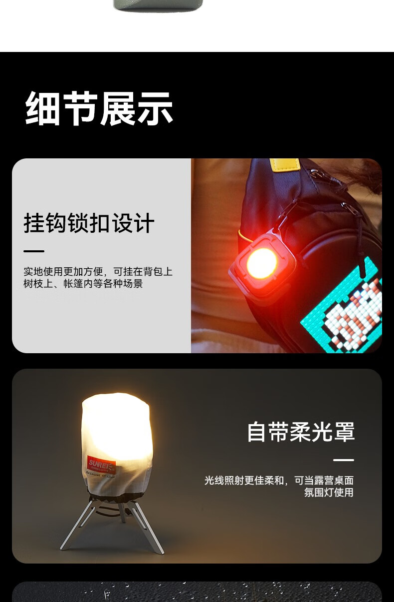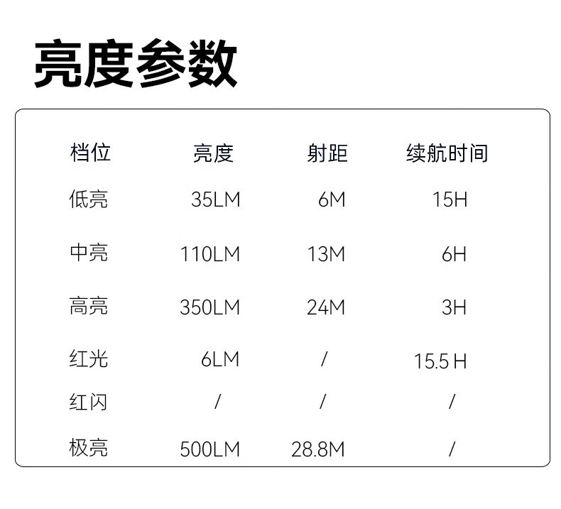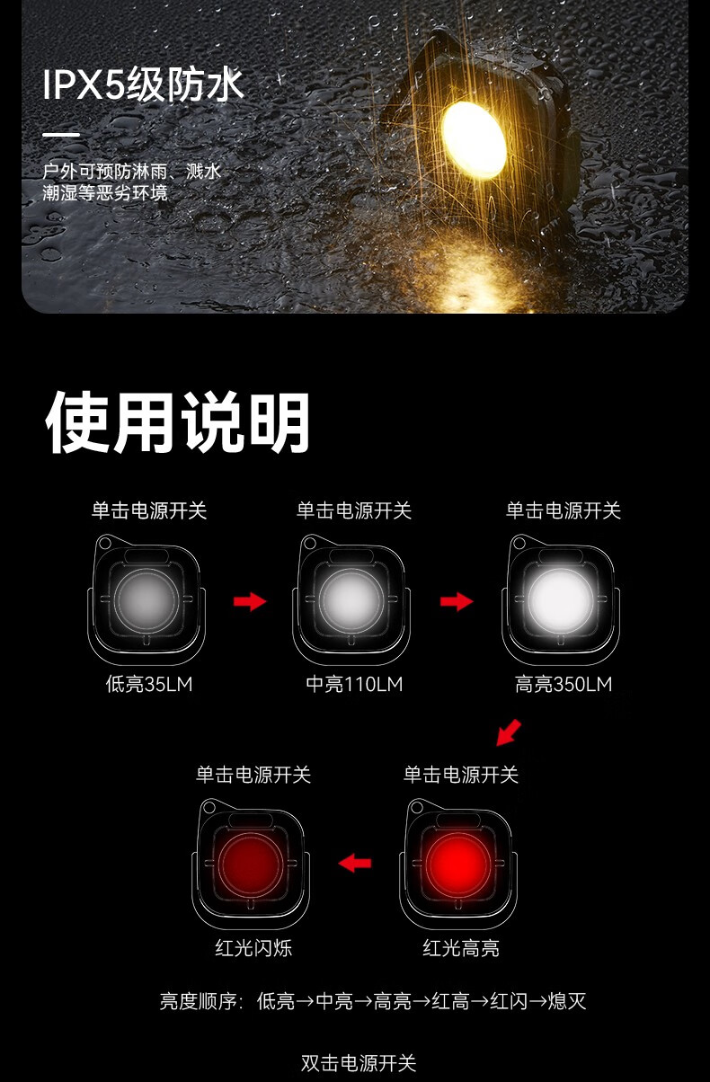 这个设计挺好的,有几种不同亮度调节,还有一种红色光,用起来挺方便的,还不知道续航能力怎么样,如果续航能力强就更好了