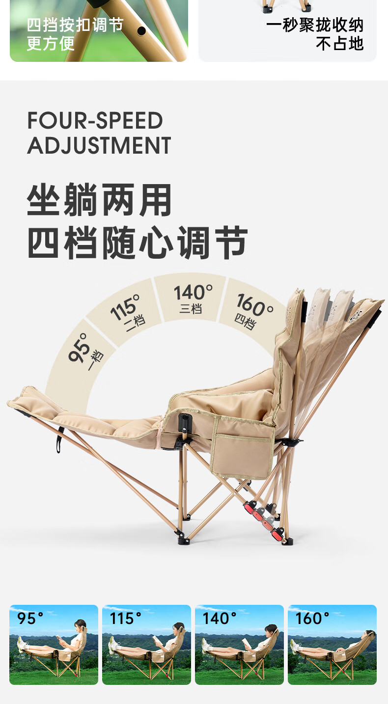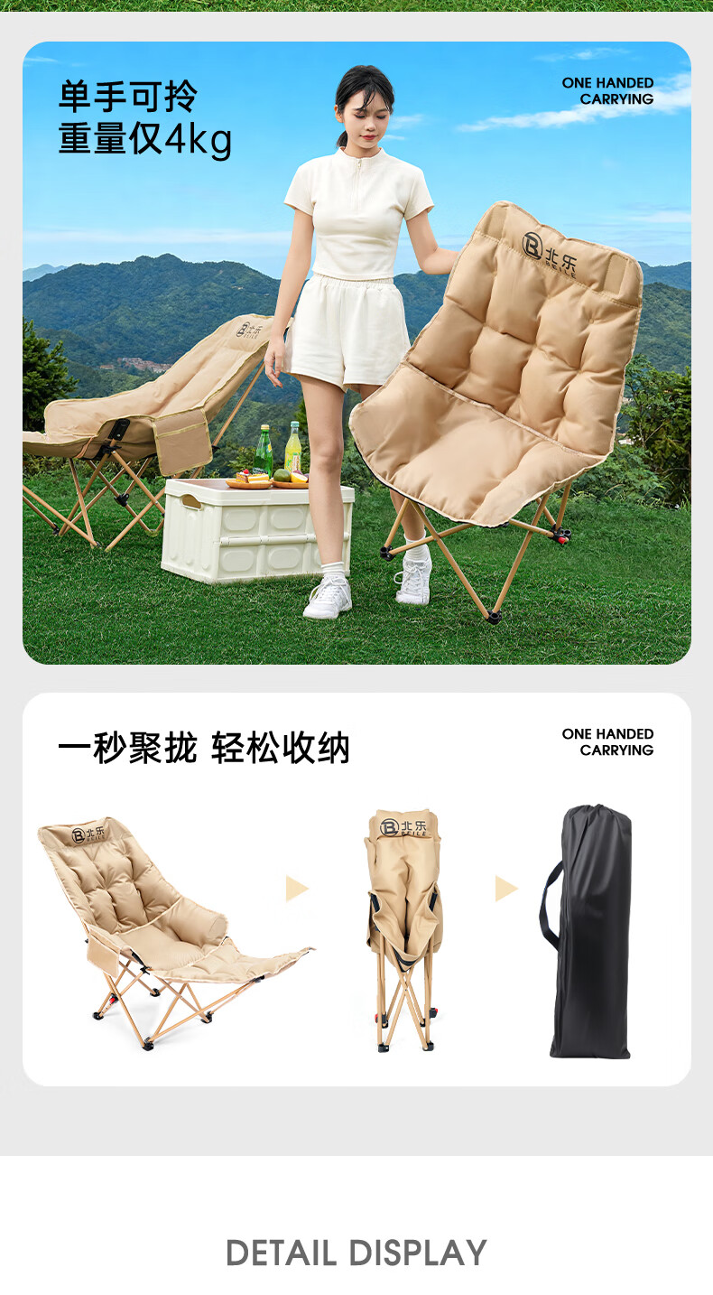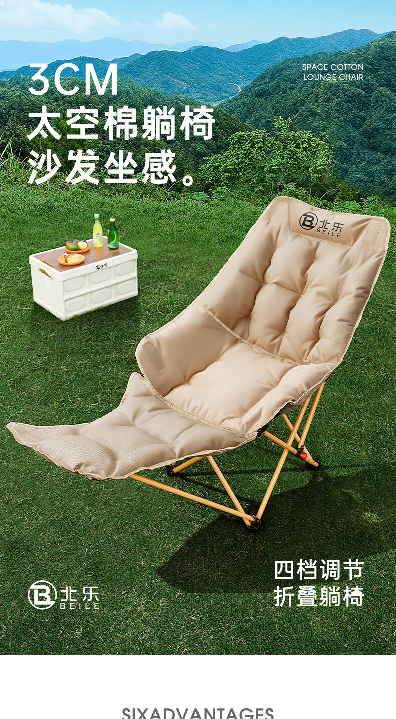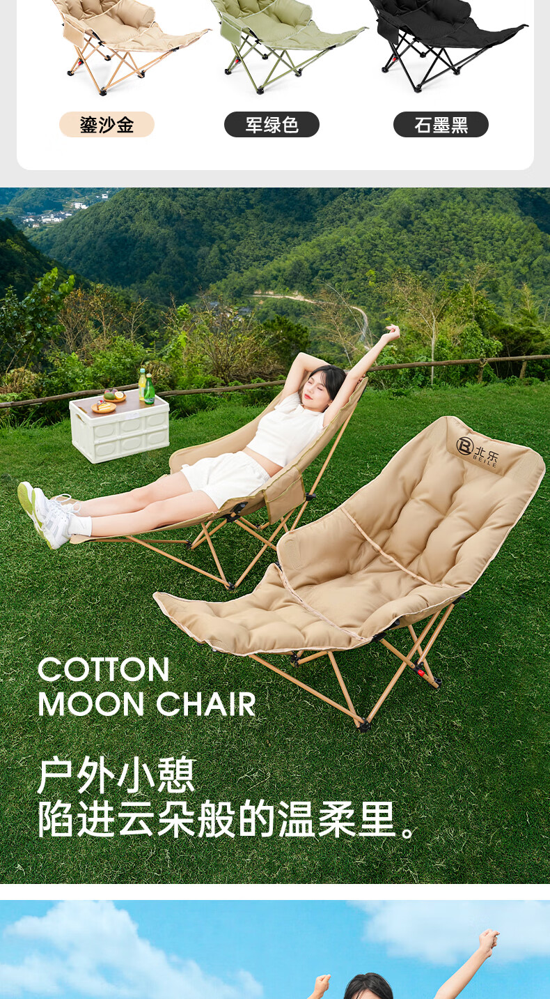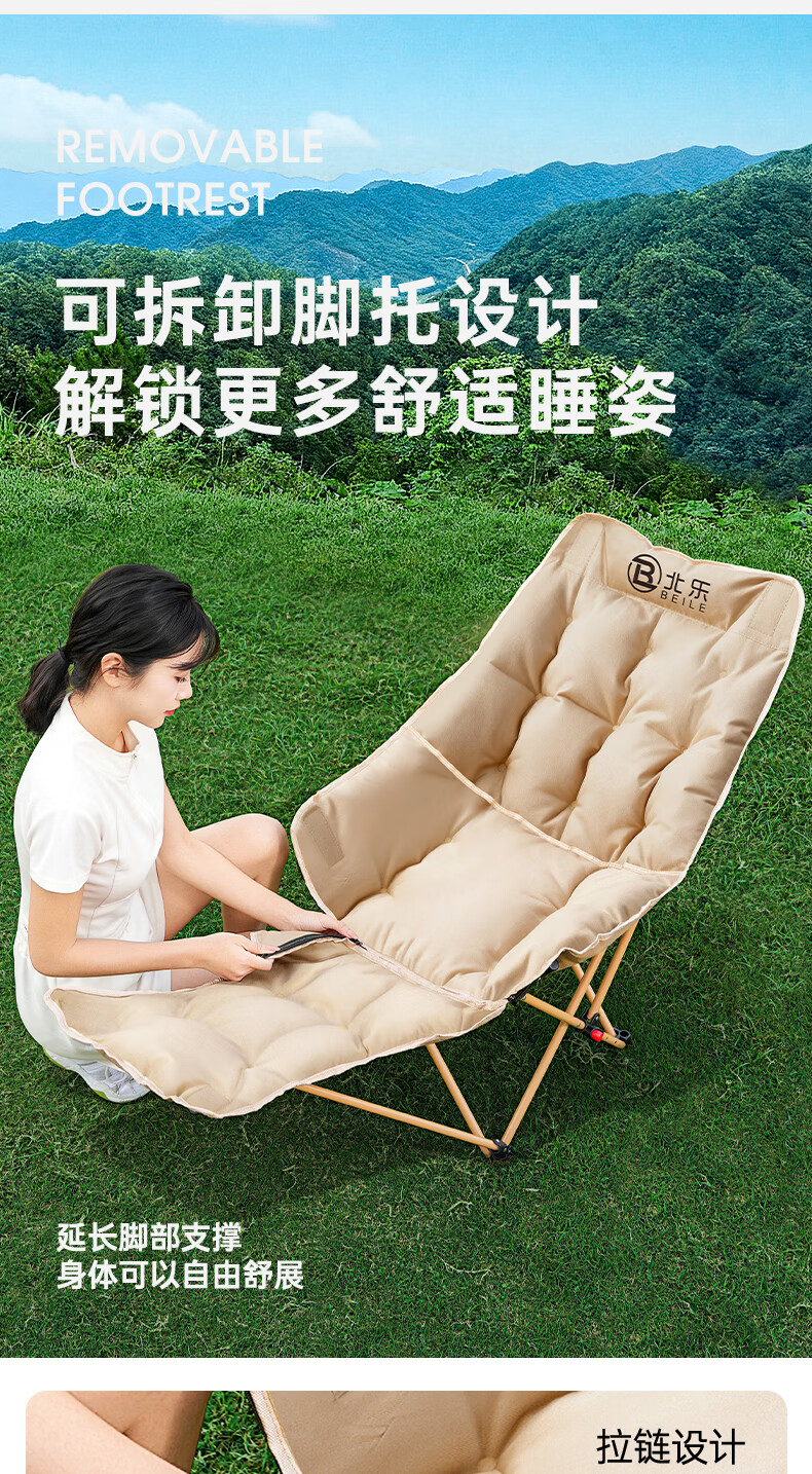 北乐户外露营午休折叠椅躺椅月亮椅子躺椅便携式午睡床钓鱼椅沙滩椅子 【流沙金-四挡调节+脚托】-升级加棉
