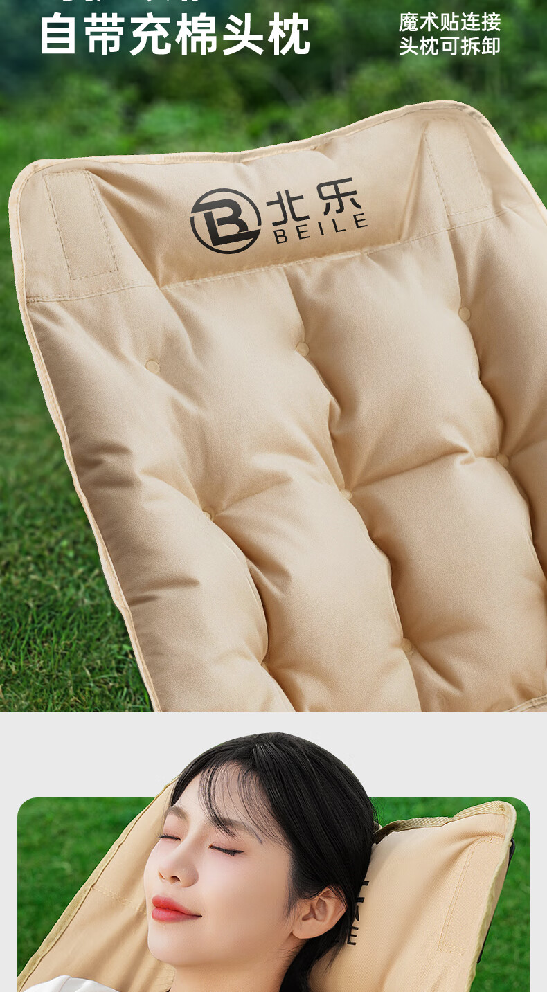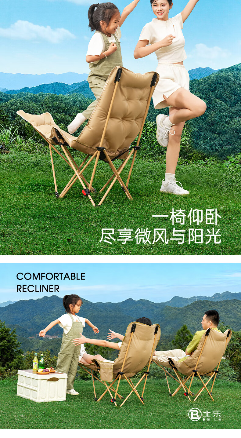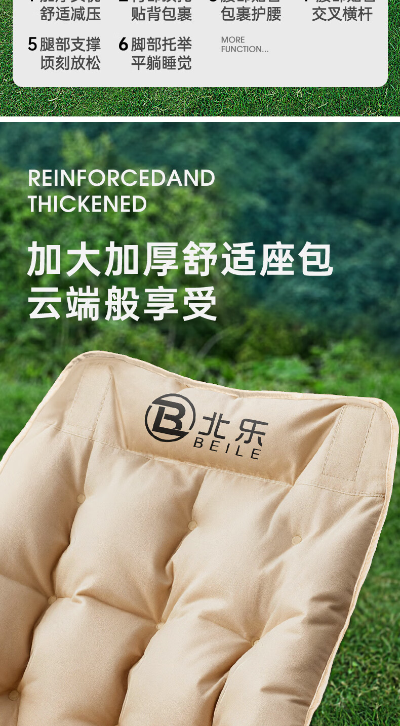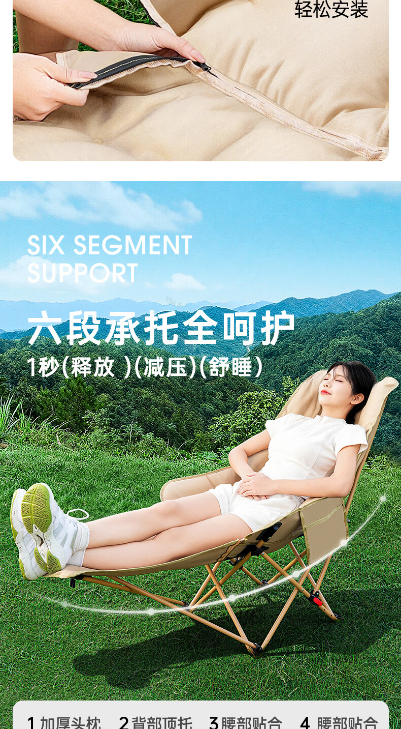 北乐户外露营午休折叠椅躺椅月亮椅子躺椅便携式午睡床钓鱼椅沙滩椅子 【流沙金-四挡调节+脚托】-升级加棉