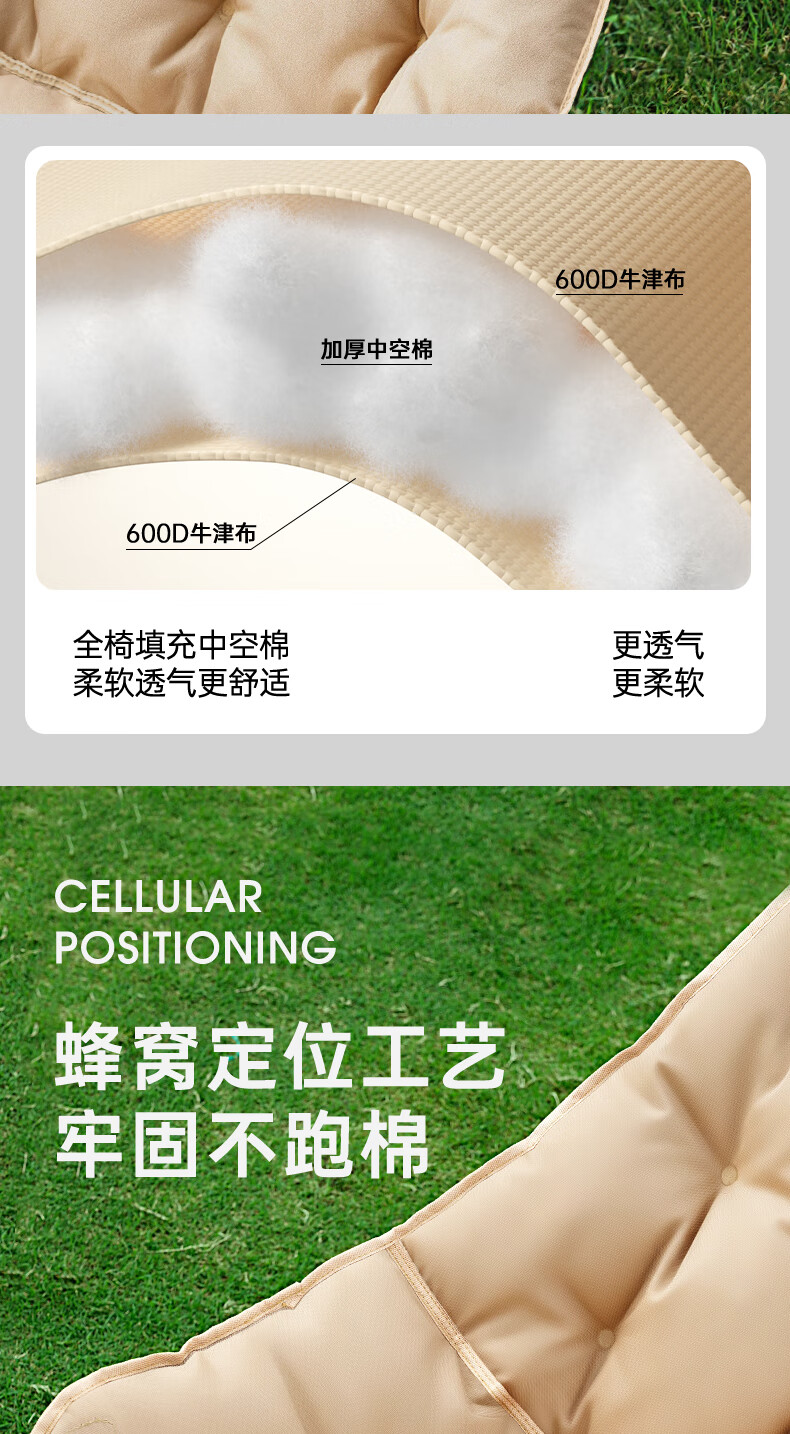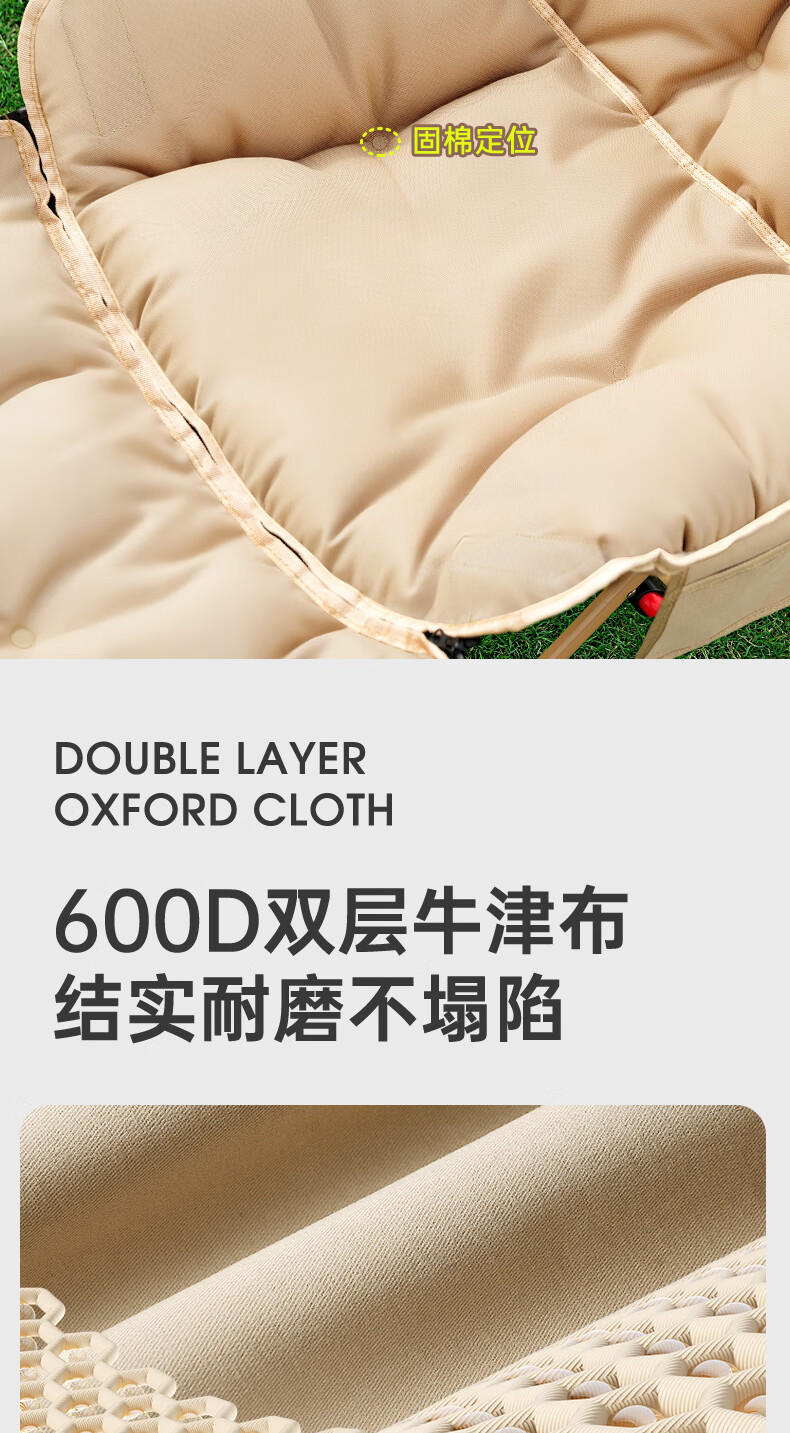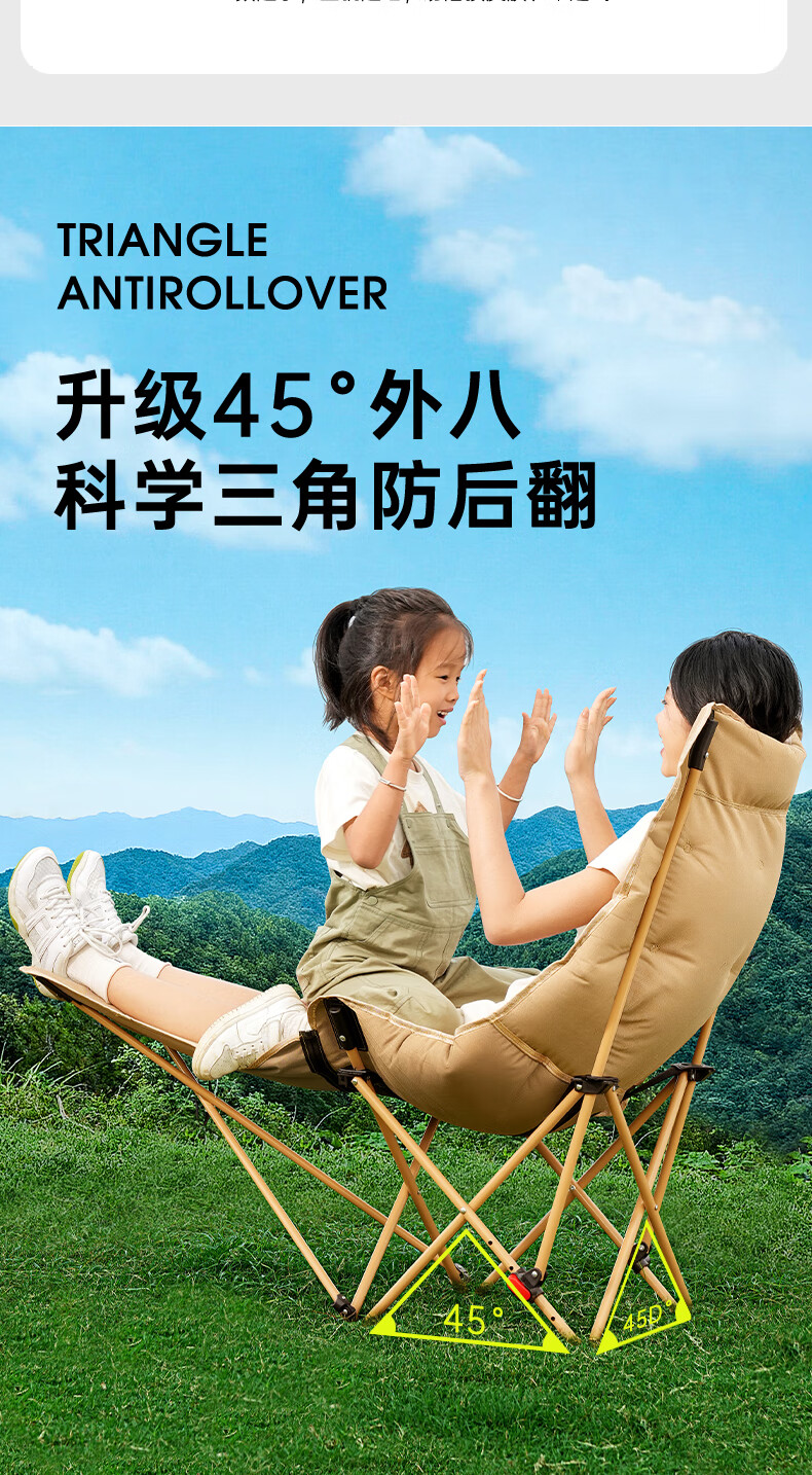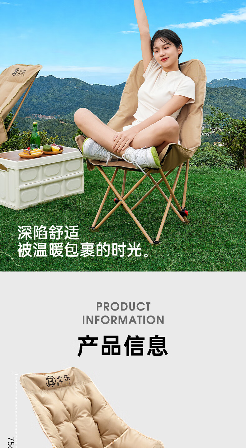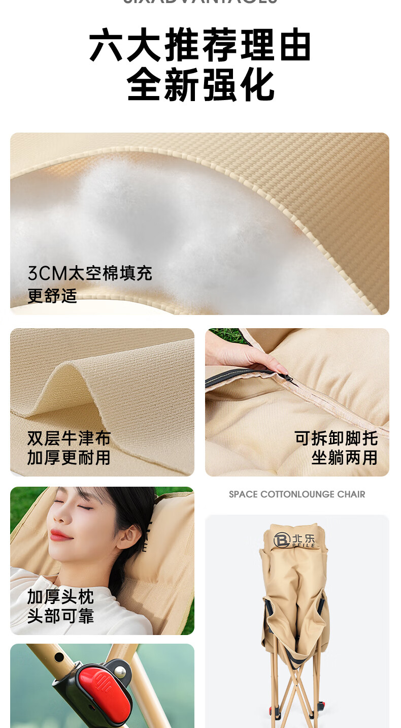 北乐户外露营午休折叠椅躺椅月亮椅子躺椅便携式午睡床钓鱼椅沙滩椅子 【流沙金-四挡调节+脚托】-升级加棉