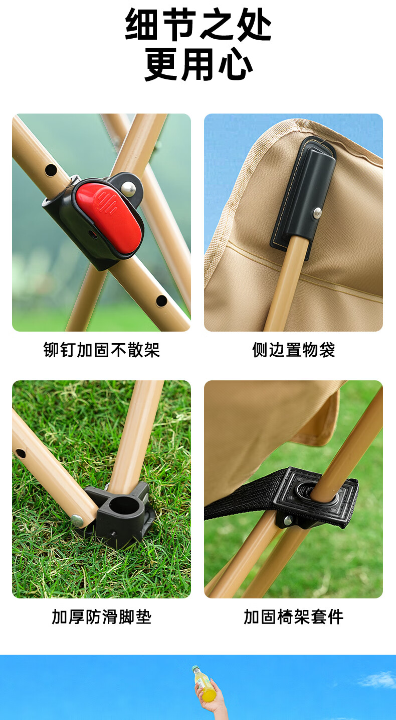 这个沙滩椅整体布局不错,设计科学合理,主体结构用料扎实、稳固,沙滩椅高度、长度,尺寸与卖家描述相符。非常适合郊外游玩,野餐小聚时使用。