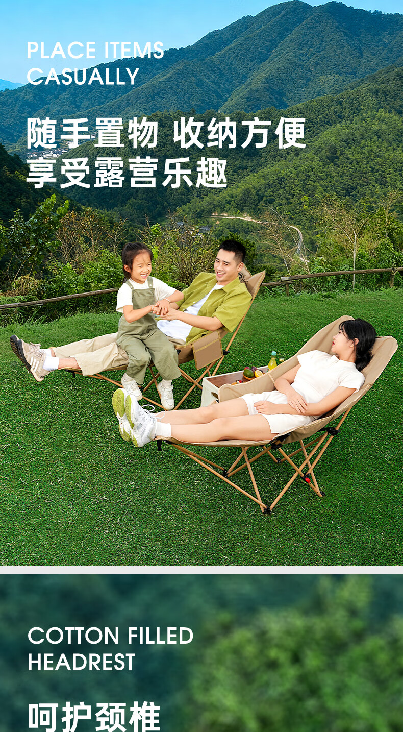 阿尤布户外露营折叠椅躺椅午休椅可坐可躺可睡承重500斤加厚便携 卡其色带腿托