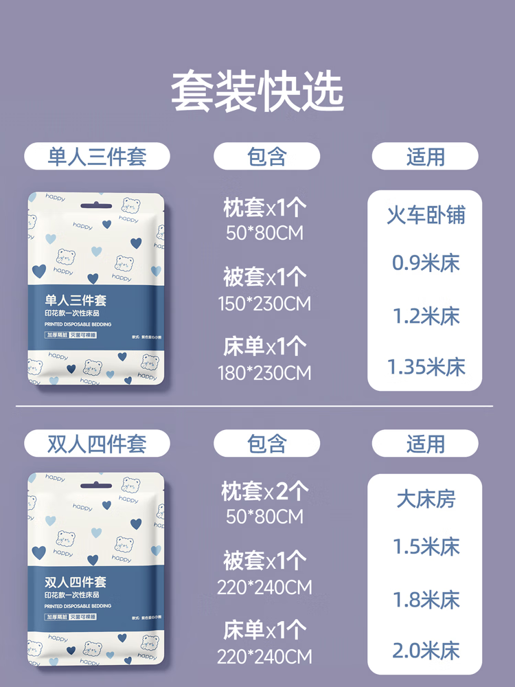 何健弓火车卧铺旅行三四件一次性酒店宾馆被罩隔 枕套0.5*0.85m1条