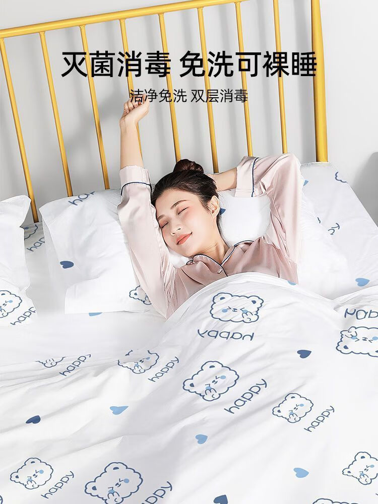 洁丽雅(Grace)7A抗菌一次性床单被罩枕套床笠四件套旅行酒店隔脏免洗床上用品 床笠双人套装2包【7A抗菌不跑位】