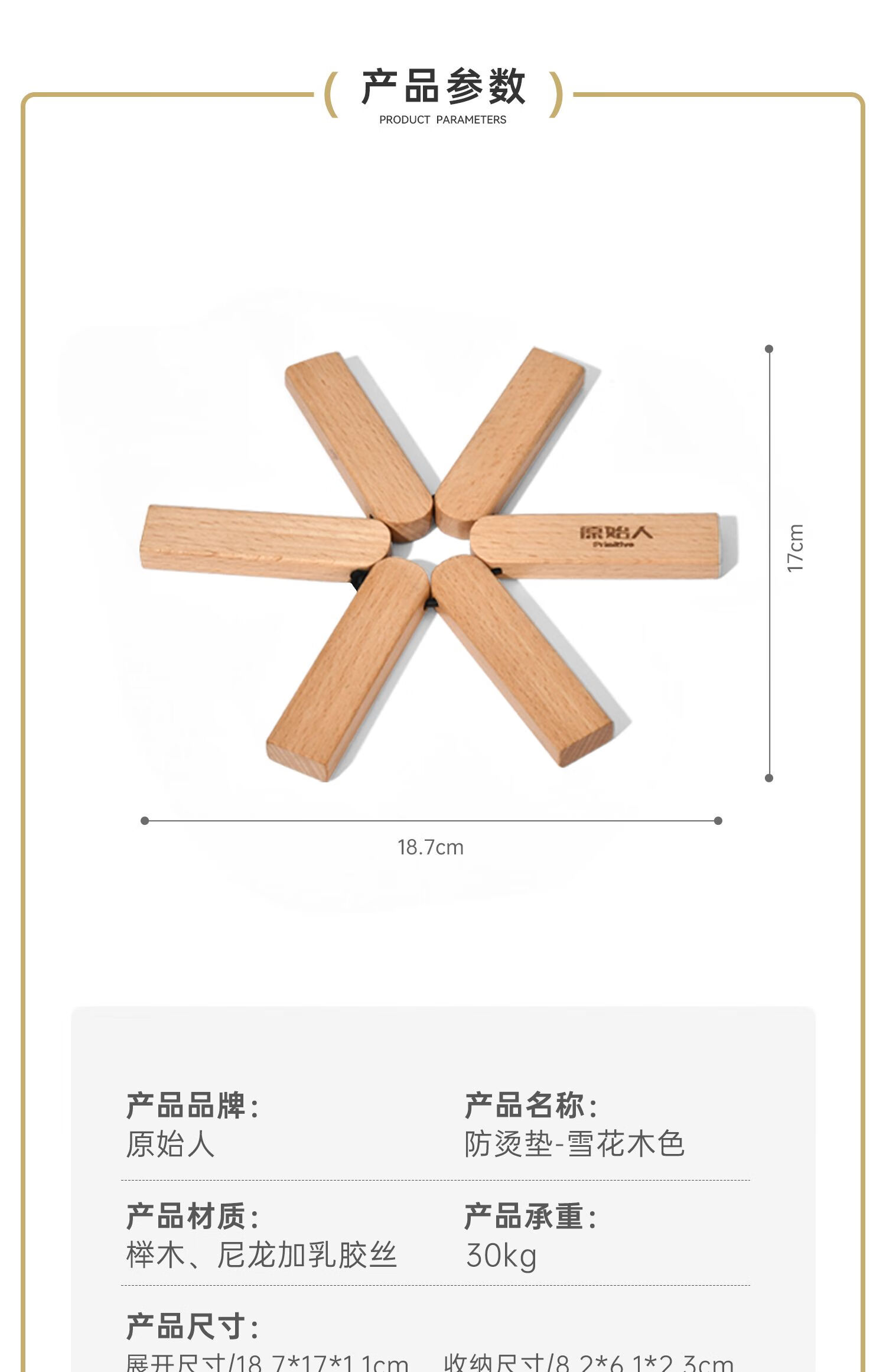 原始人杯垫户外家用隔热垫防烫餐垫折叠便携实木锅垫露营装备 榉木防烫垫