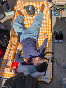 能购买的是2m乘2m的大尺寸的一个户外的野餐垫。然后它这个的话是非常适合多人家庭带小朋友带两个小朋友出去玩的话,也是非常合适的,可以放一些东西,然后也几个人平躺,所以是完全没有问题的吃寸是非常好而且它的防潮性也很
