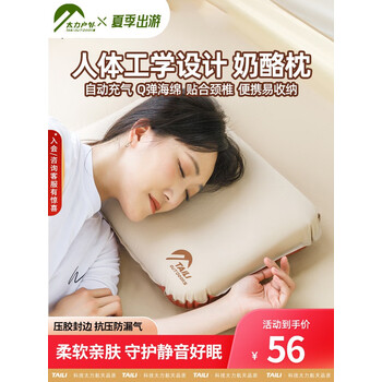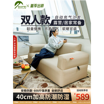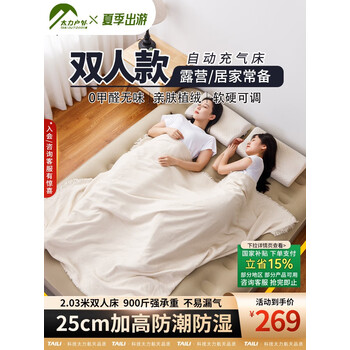 太力海绵垫自动充气户外露营充气垫折叠睡垫防潮加厚午休垫奶咖色