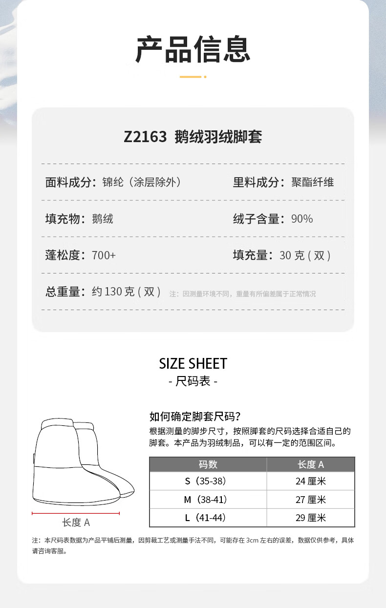 36码的脚,选的S码,穿上大小正好,现在温度还挺高感觉不到羽绒袜上脚的温度,但是还是比较信任黑冰,700蓬冬天够用了,先备着,冬天露营的时候再拿出来用,不过貌似在家也可以穿。
