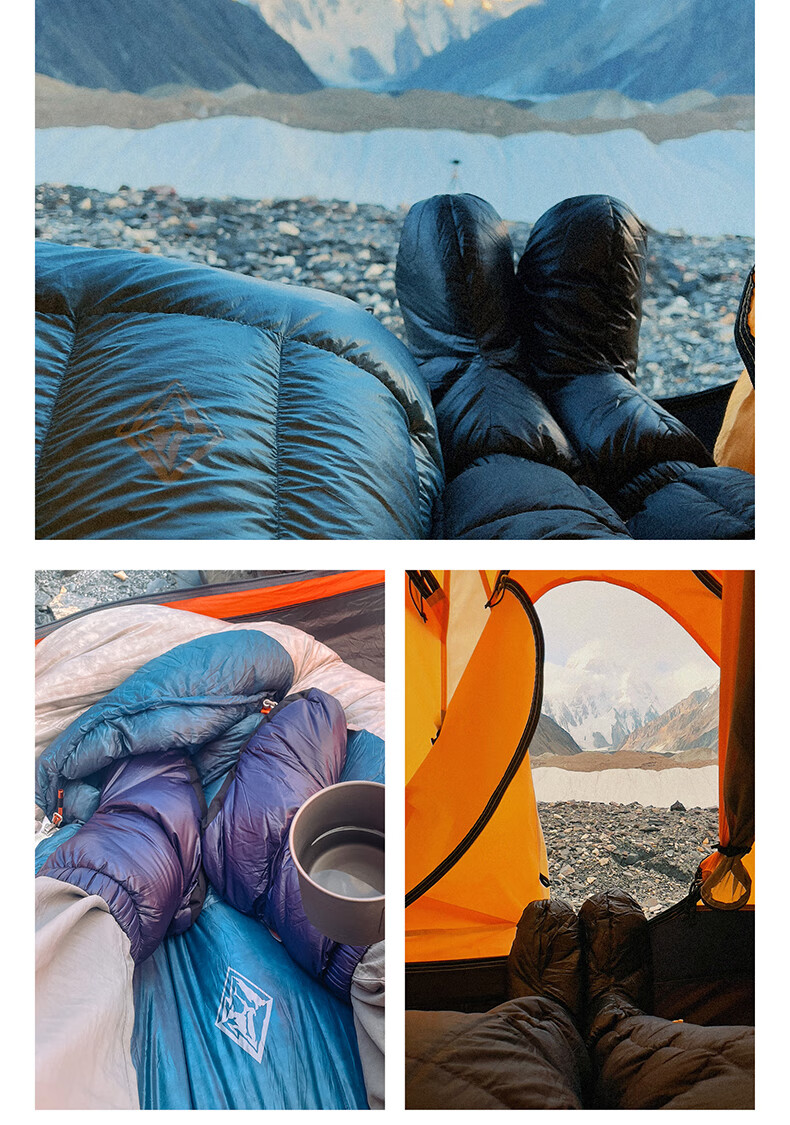 睡袋用的黑冰的,冬天了户外露营买一个脚套更加暖和。做了很多功课,还是黑冰的这一款适合重装徒步,重量小,收纳小,背负压力小。总体很不错,下礼拜海拔3000露营体验一下