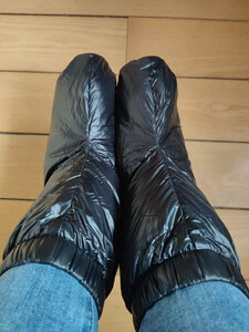 收到羽绒袜子,就迫不及待试穿了,非常好,鹅绒蓬松度也很棒,很轻,速干效果很好的,保暖更是没有问题,防风保暖也是非常给力,特别是配合防水雪地靴使用简直超级棒,防风因为鹅绒非常好。