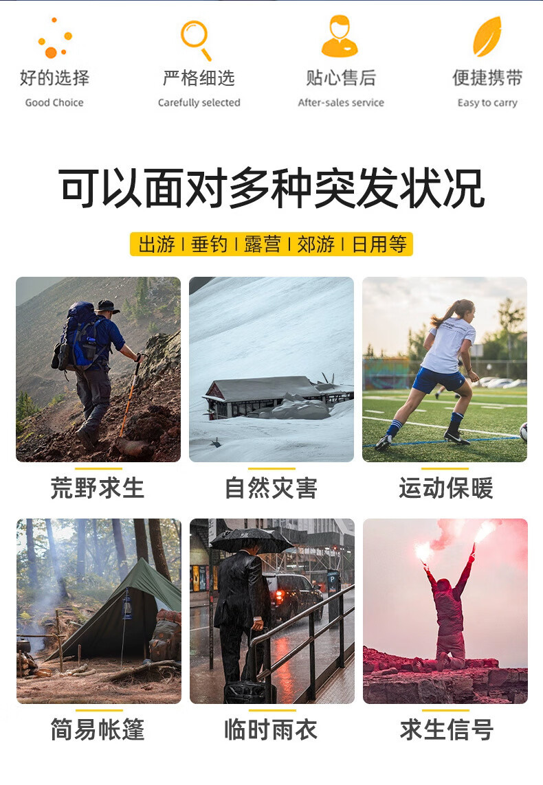 运动户外户外装备便携地震应急保暖袋户外救生保暖户外工具 户外保温毯【160*210cm】5个装
