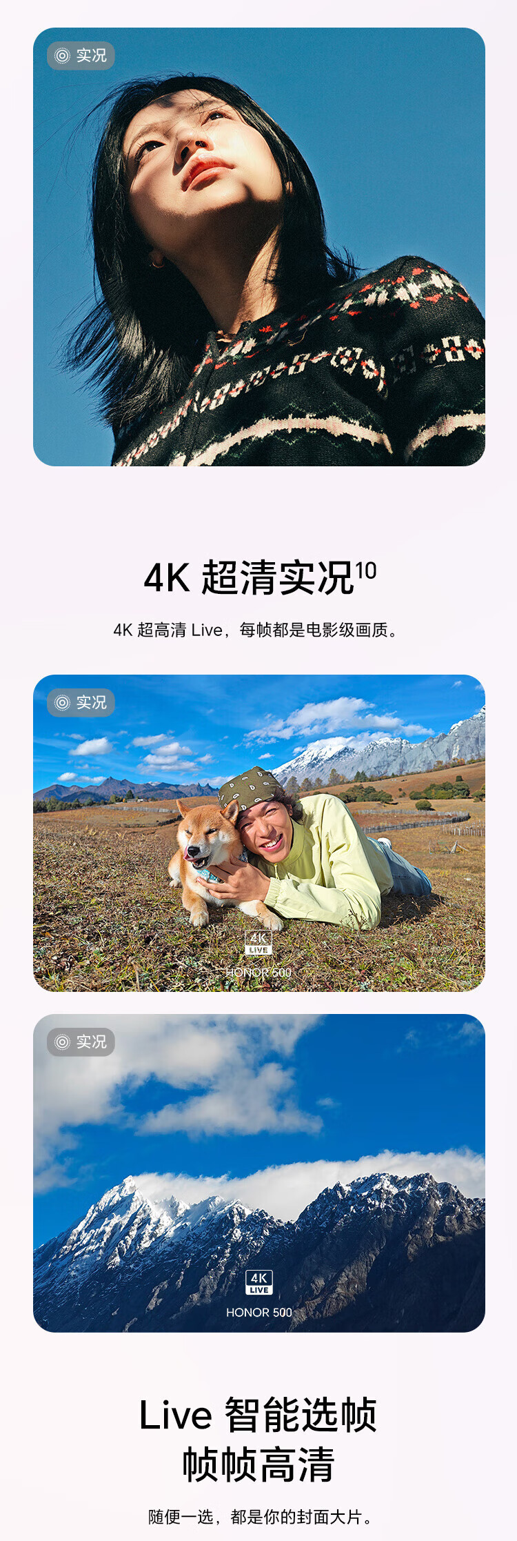 荣耀500 超级标准版 肖战同款 2亿人像全能实况 青海湖电池 5G AI 学生 新款拍照手机 曜石黑 12GB+256GB 官方标配