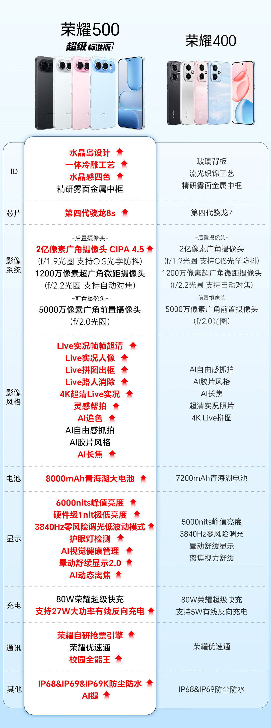 荣耀500 【肖战同款】荣耀400升级版 新品5G荣耀手机 超级标配版 2亿人像全能实况 MC31A 海蓝宝 12GB+256GB 官方标配【6期免息】