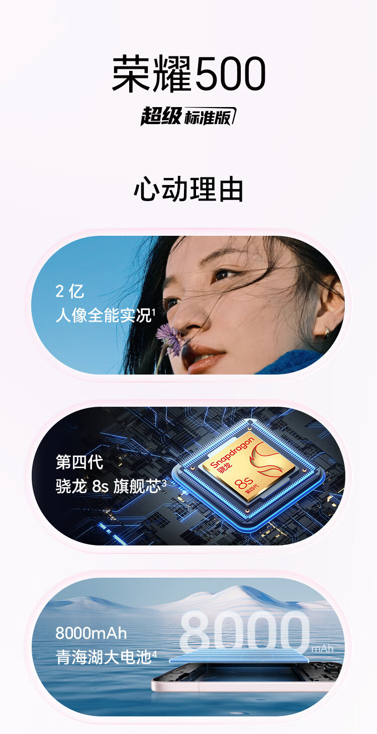 荣耀500 Pro 超级Pro版 骁龙8至尊旗舰芯 青海湖电池 肖战同款 5G AI 拍照 新款手机 海蓝宝 12GB+256GB 官方标配【送碎屏险+晒图好礼9选1】
