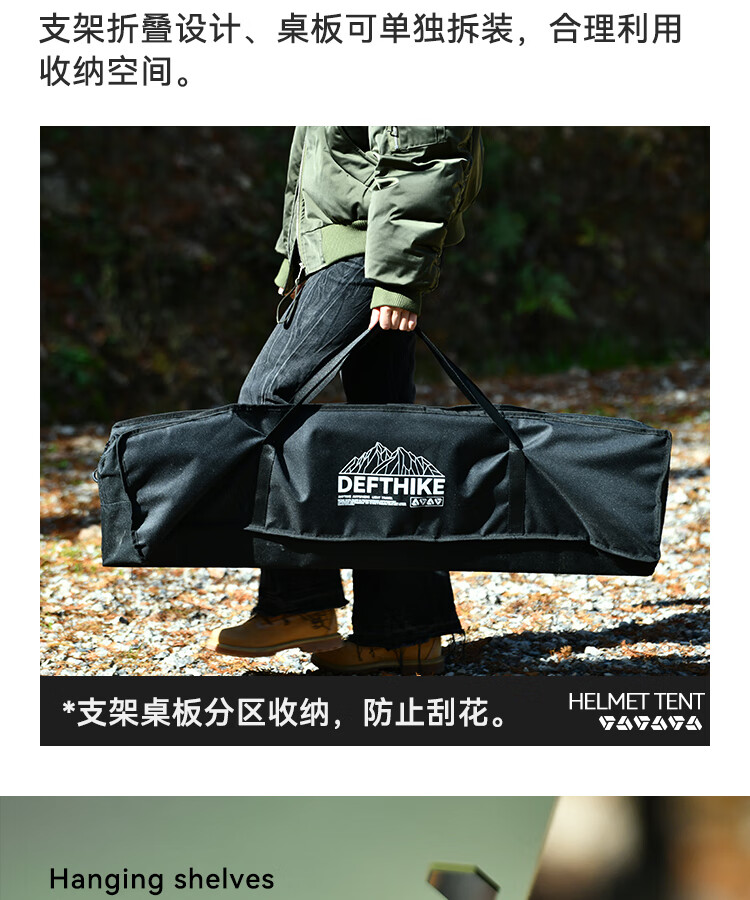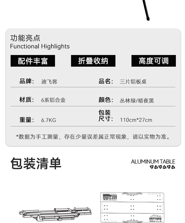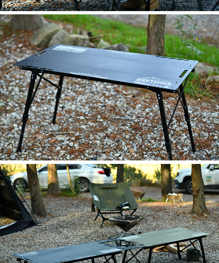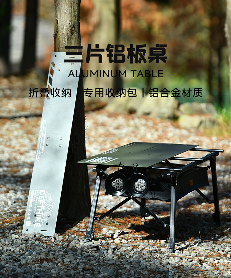 迪飞客三片桌铝板战术户外露营桌可升降IGT铝合金便携野餐折叠蛋卷桌子 三片桌 夜幕黑