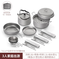 德斯汉菲纯钛户外锅具炉具露营装备用品钛合金烧水壶野外野营餐具便携套锅 【3人家庭出游】蒸套锅-12件套