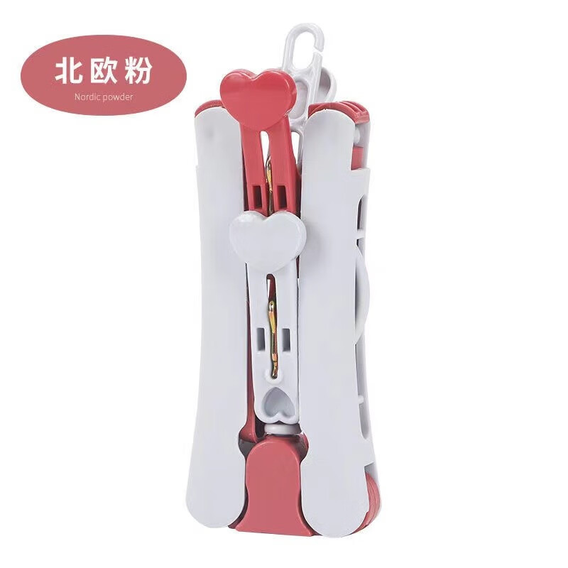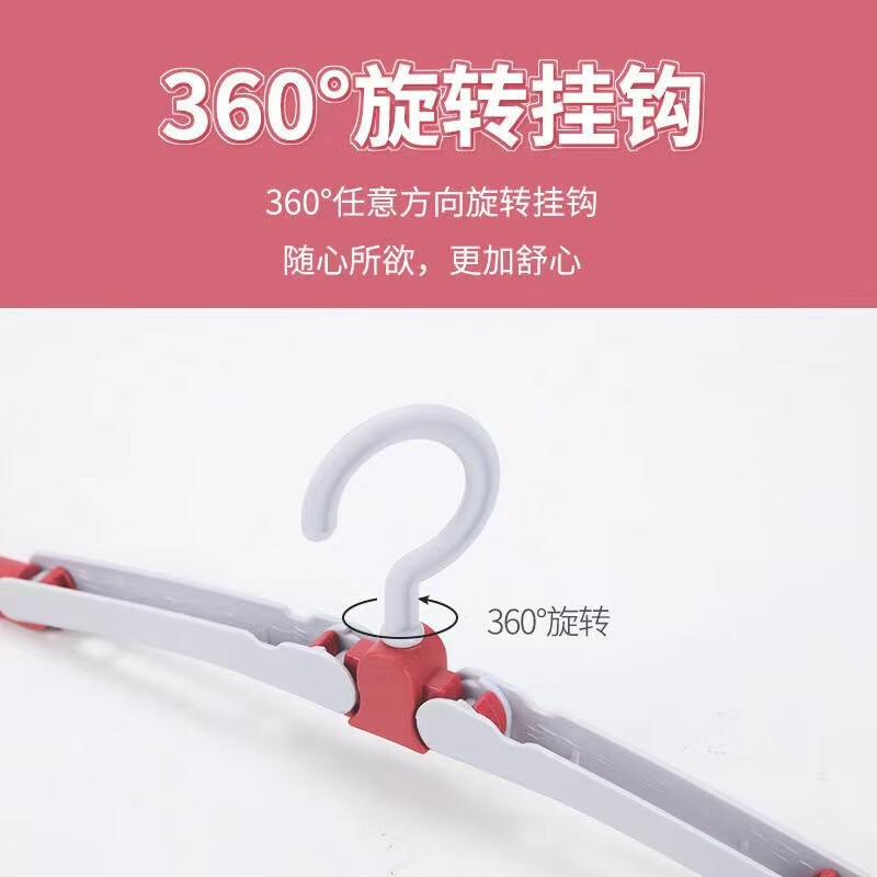 这款旅行出差便携折叠衣架一套六个,颜色有北欧蓝和北欧粉色两种,它的两侧是可折叠设计,轻松防滑,可防止衣物掉落。它的挂钩可以360°任意方向旋转,悬挂时随心所欲,怎么方便怎么来,简单实用。