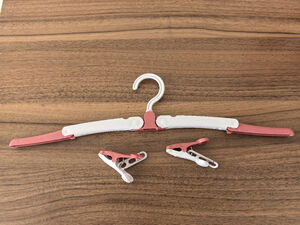 产品收到,与商家描述一致,折叠式衣架方便出行,携带方便,还带两个小夹子,可以晾晒袜子等小物件,材质也比较结实,商家配送速度很快,很满意的购物体验!