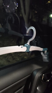 塑料链接处并不是很紧实,不过考虑到本来就是向下弯折的应该问题不大。还有就是整个衣架是强度一般,目测只能挂单衣。