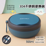 LOCKZI 折叠碗便携式碗餐具筷子勺子套装单人装旅行便捷饭盒三件套 深海蓝500ML 纯正304不锈钢内胆