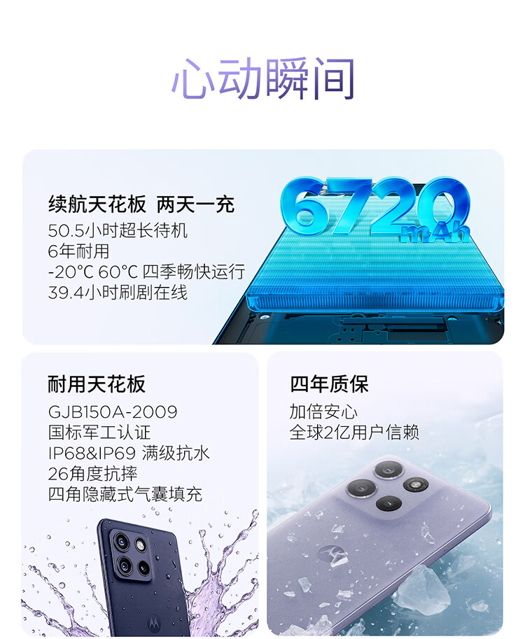 摩托罗拉 moto g100 Pro 1.5K护眼屏 6720mAh大容量电池 IP68防水 全功能NFC 5GAI 摩托罗拉手机 绫罗紫 12GB+256GB 官方标配