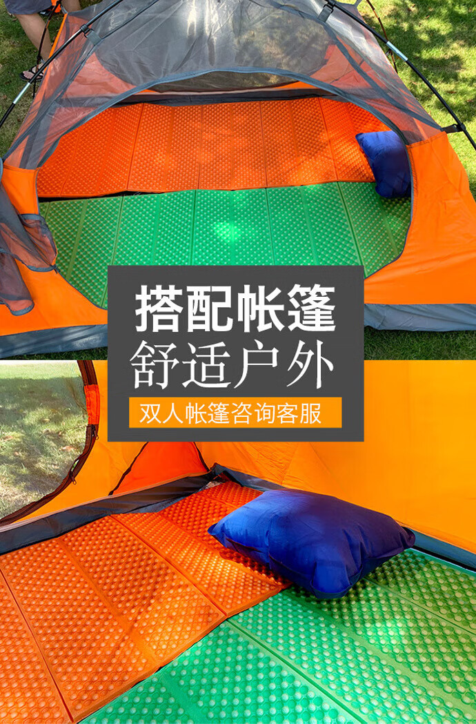 山之泉户外蛋巢可折叠8折小坐垫蛋槽垫便携保暖睡垫防潮儿童成人 P8无铝8折坐垫-桔色