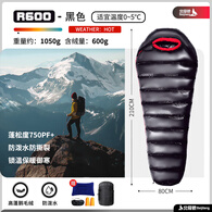 北极狼木乃伊羽绒睡袋成人户外露营徒步登山便携加厚鹅绒保暖抗寒防泼水 黑色600g高充鹅毛羽绒睡袋