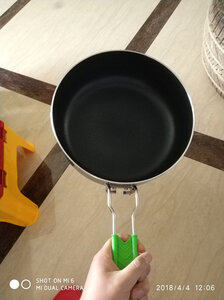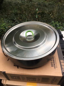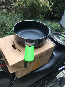 锅挺重的,与我想买个轻一些的炒锅不太适合,需要木铲子炒菜,说明真是涂层锅。路途太慢了,幸好我行程改变了。锅的容量非常大,户外十个人吃饭完全可以,还是非常实用的。