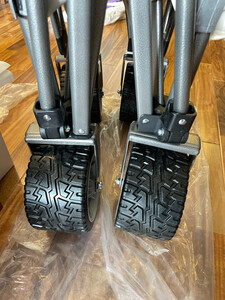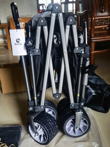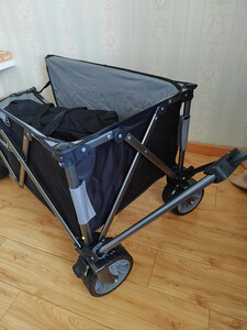 收到包裹好大一箱,配件分类包装,专业,还是挺有分量,现场拆开,5分钟就安装好了,首先感觉用料真的很扎实,轮子也很有分量感,很宽也很顺滑,桌板做工也很精细,第一印象非常好,虽然价格不便宜,但是一分钱一分货,一路拖回来回头率也挺高,我现在都看不上别人的野餐车了,容量很大,当初纠结大有可为和这款,这款吸引我的是后尾门可开,装上桌板取东西很方便!个人觉得这个价位的车无敌的存在,一路拖回来很轻松,草地上试了下也很轻松,总之,非常满意非常推荐!